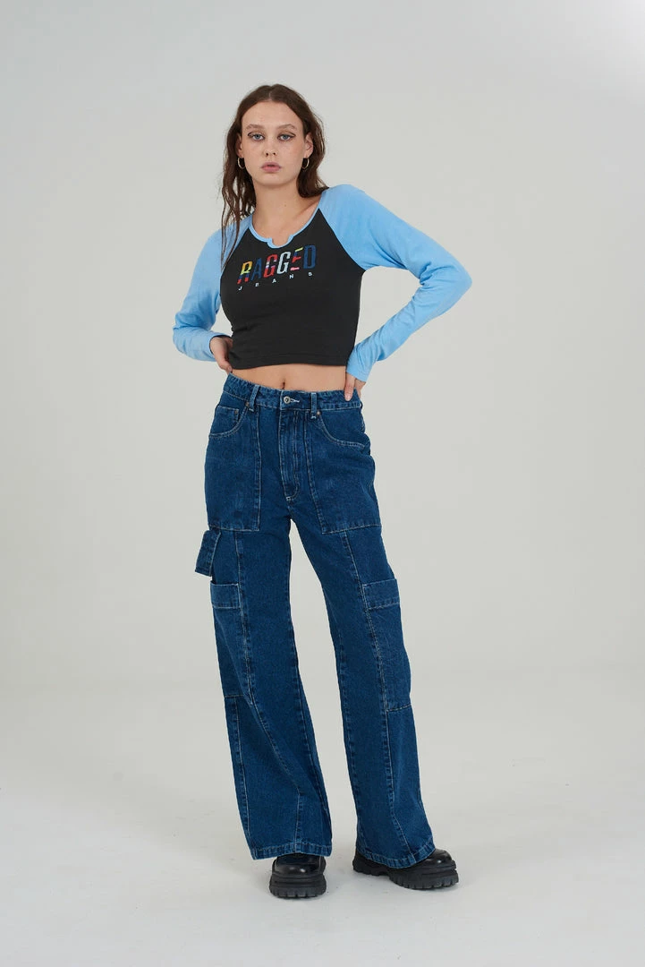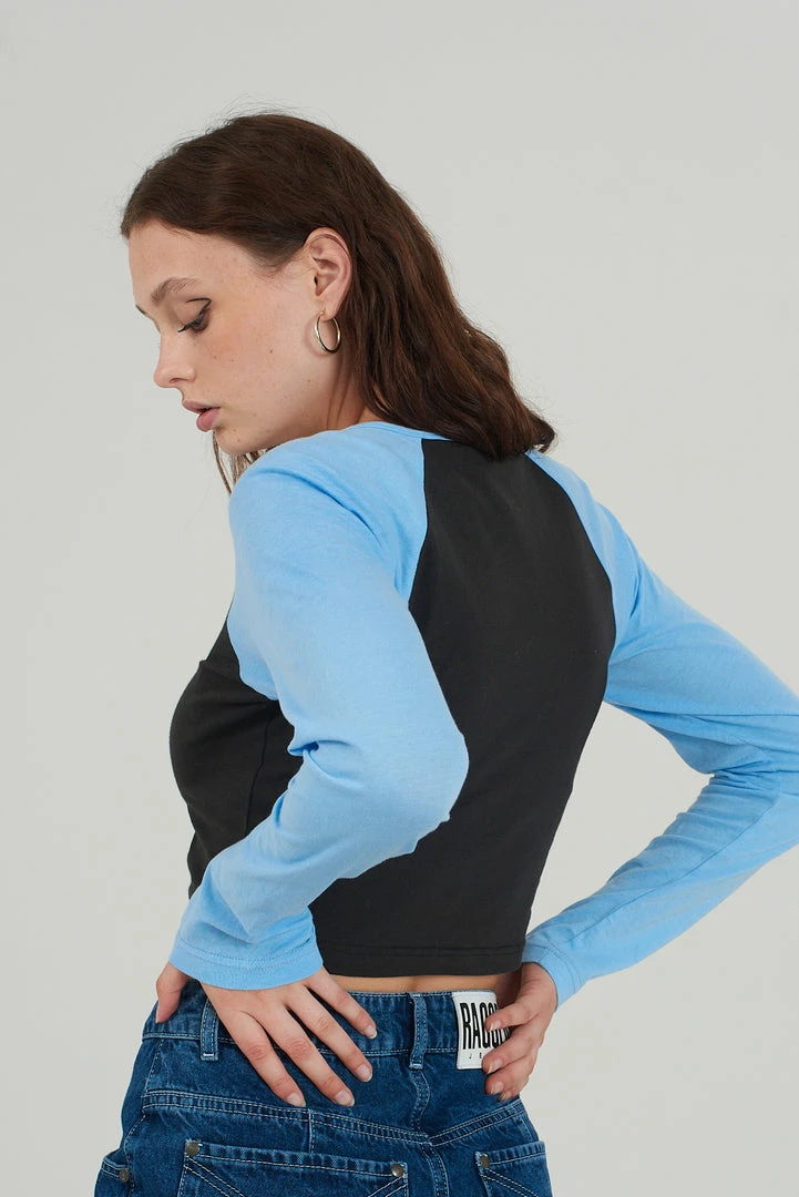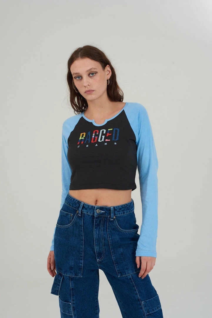 Ragged Jeans black & blue long sleeve ringer tee with appliqué logo.
