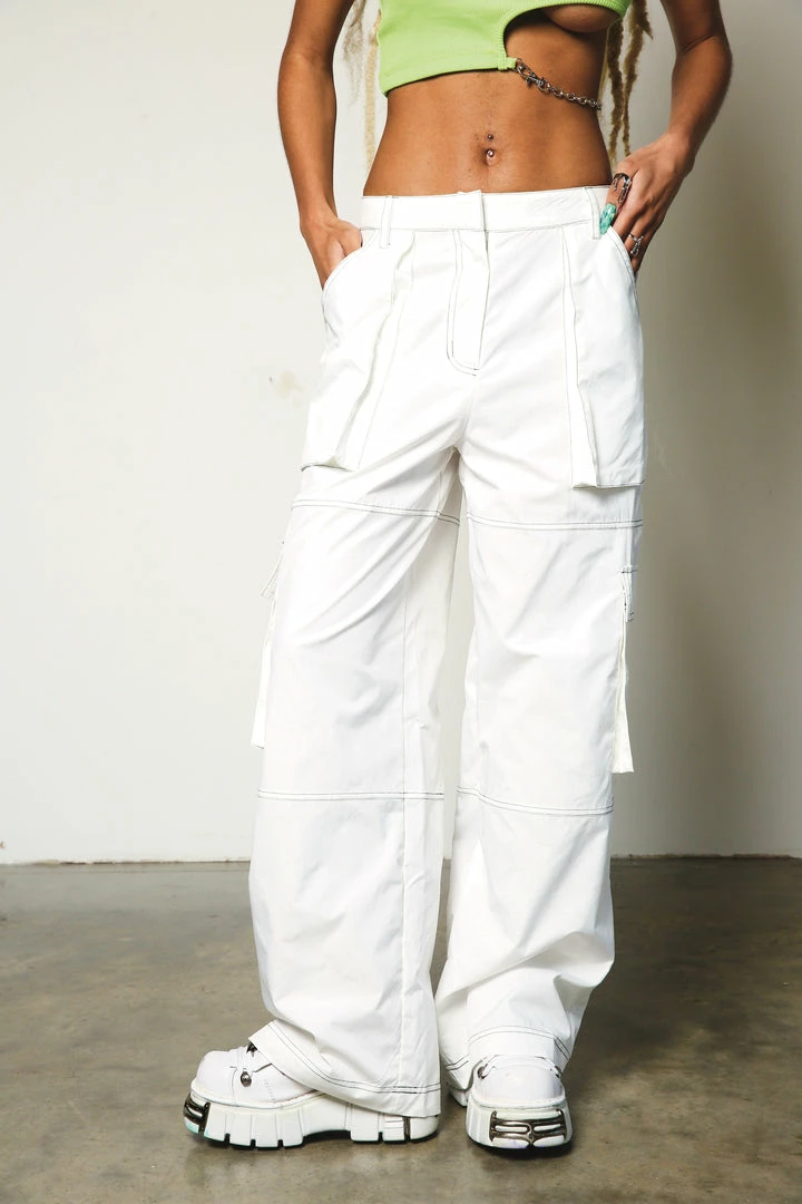 The Ragged Priest white baggy wide leg combat trouser with leg panels
