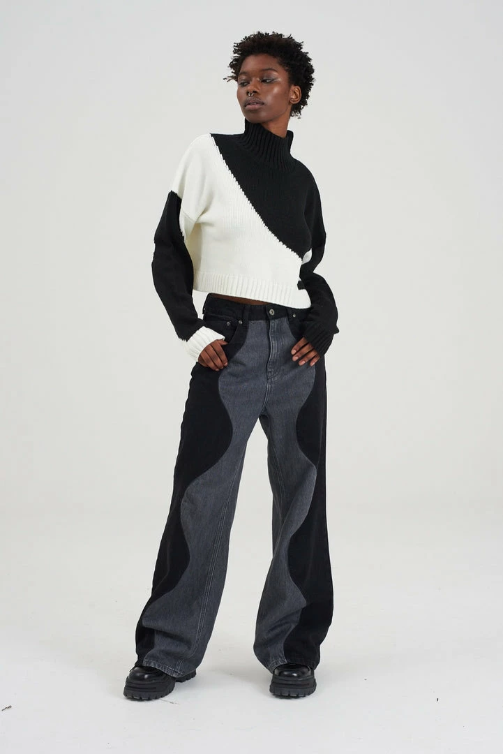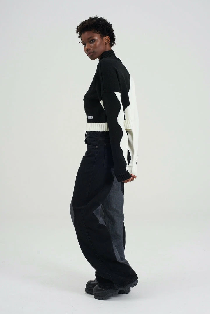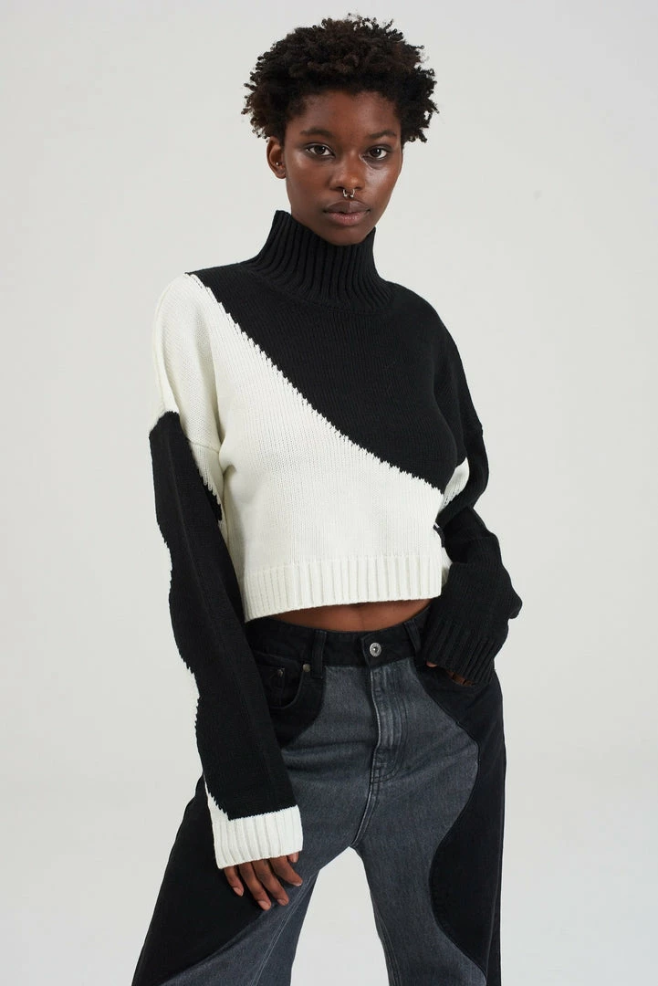 Ragged Jeans black and white chunky knit roll neck jumper.