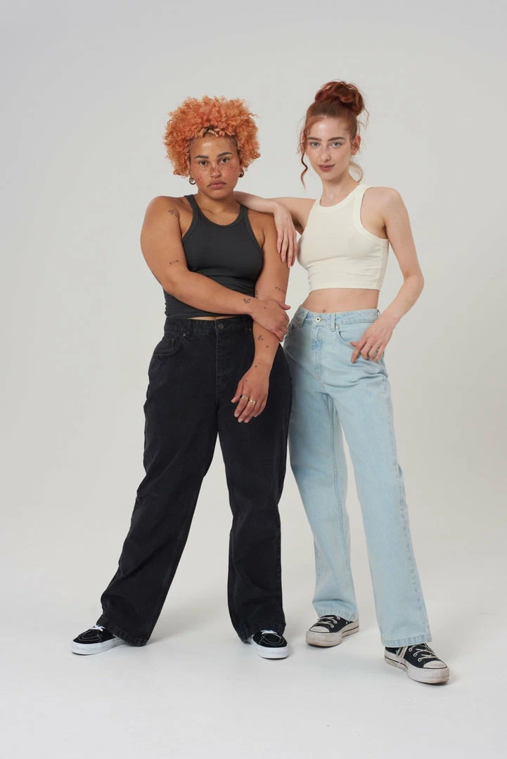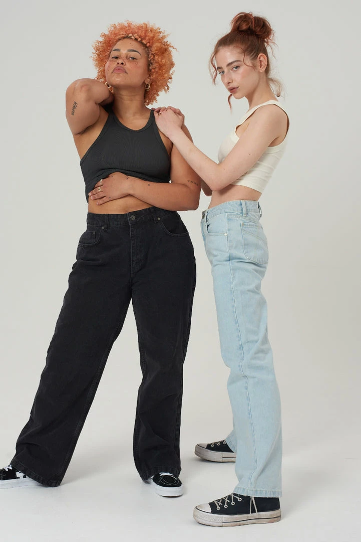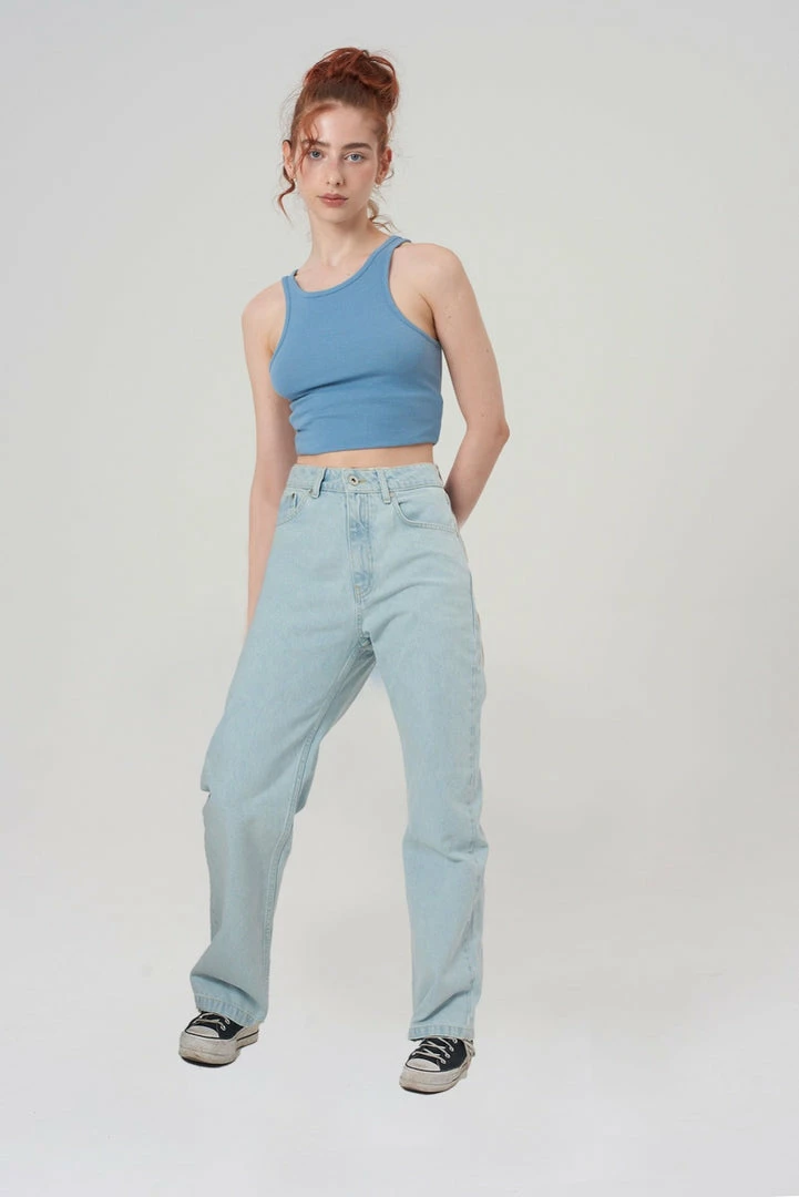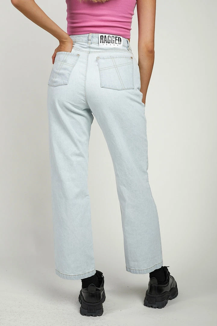 The Ragged Priest signature Dad Jean fit in our light blue stonewash denim with classic “Ragged Jeans” belt loop back tab.