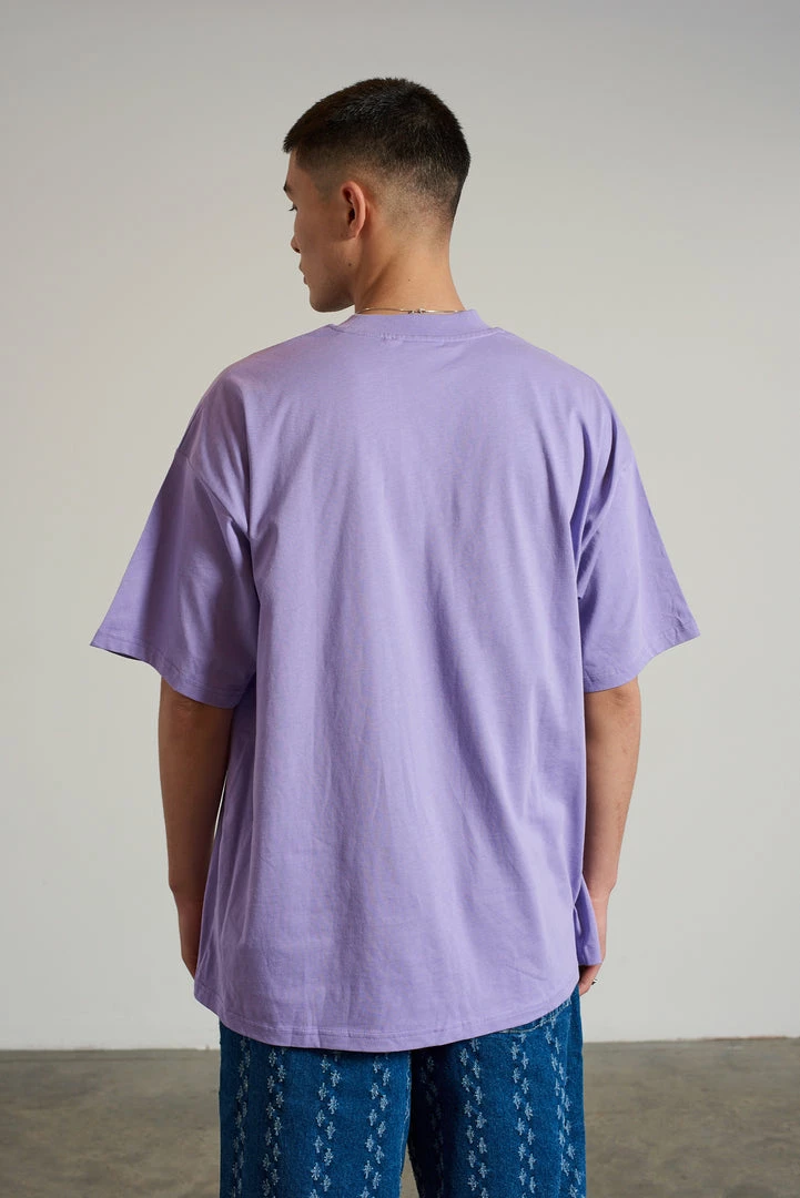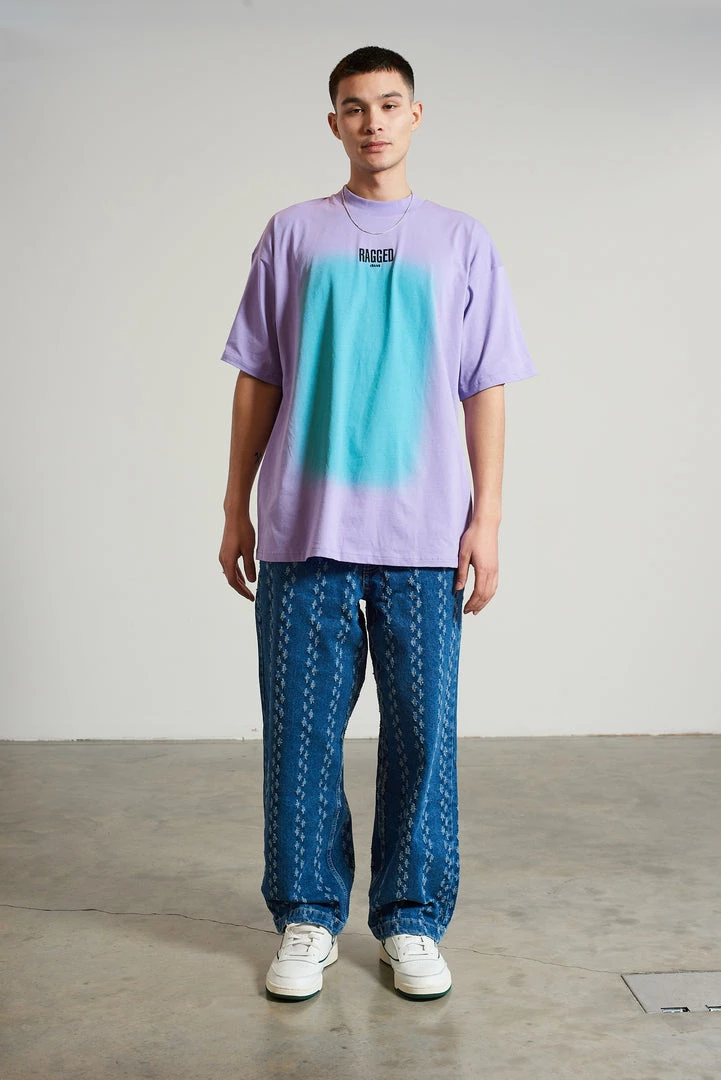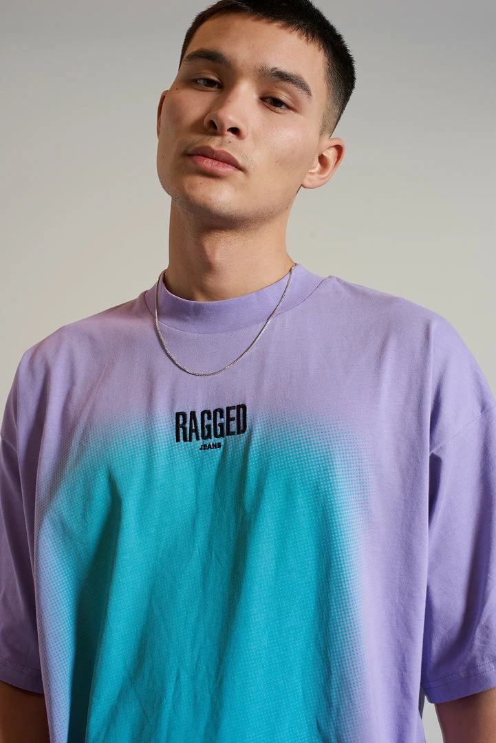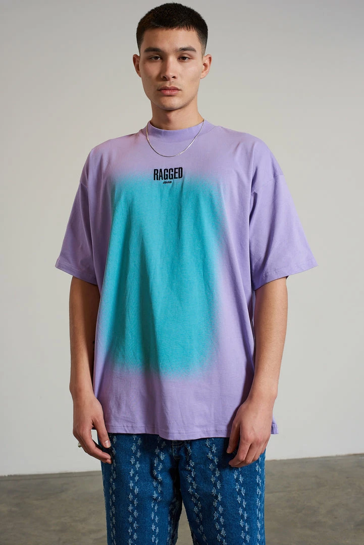 Ragged Jeans mens purple and blue burn out print short sleeve tee with embroidered Ragged logo.