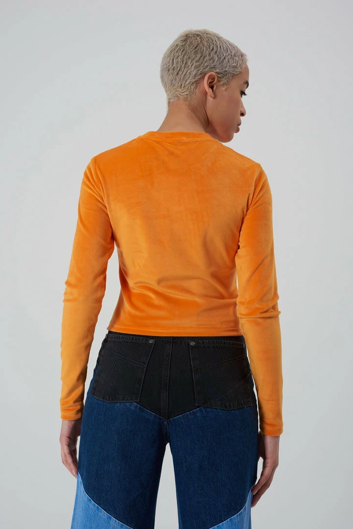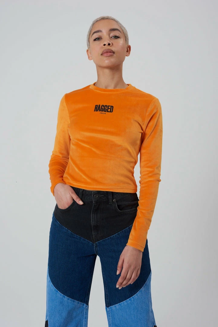 Ragged Jeans orange velvet long sleeve top.