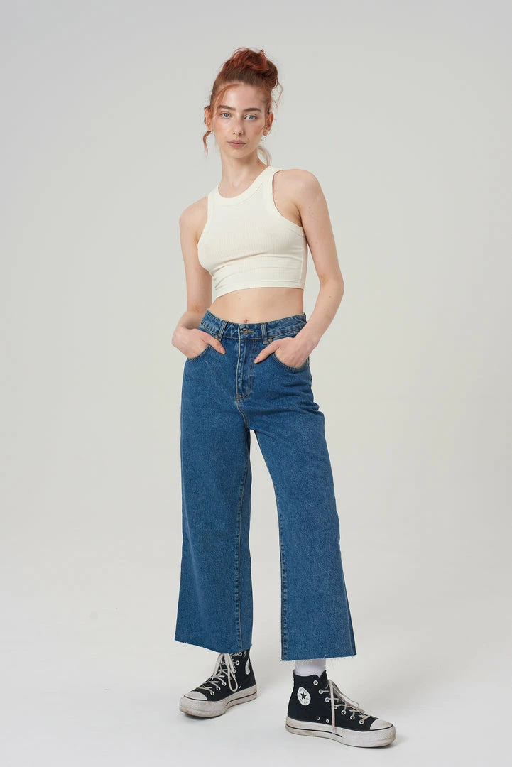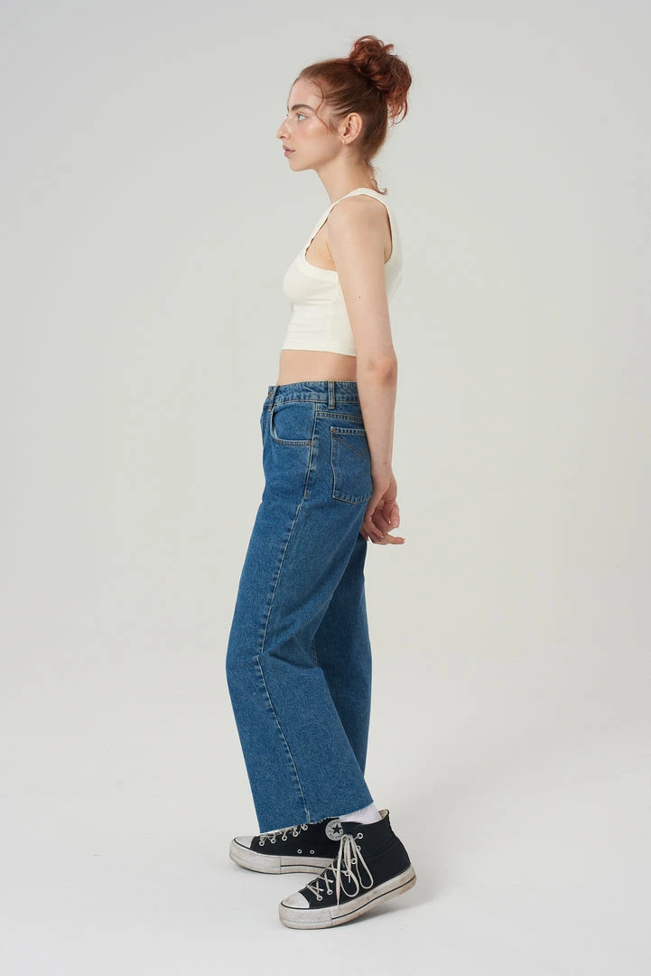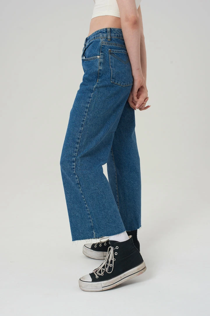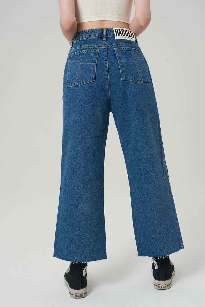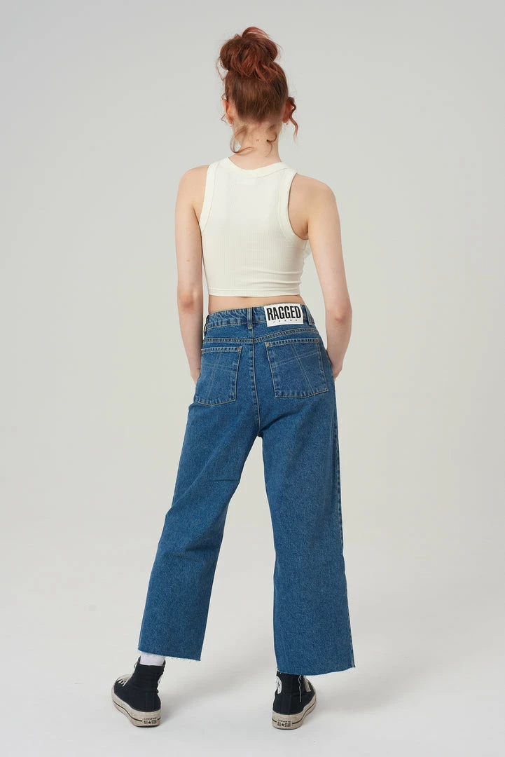 Ragged Jeans Grip cropped skater Jean in blue. Complete with “RAGGED JEANS” back belt loop tab.