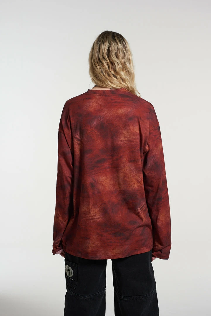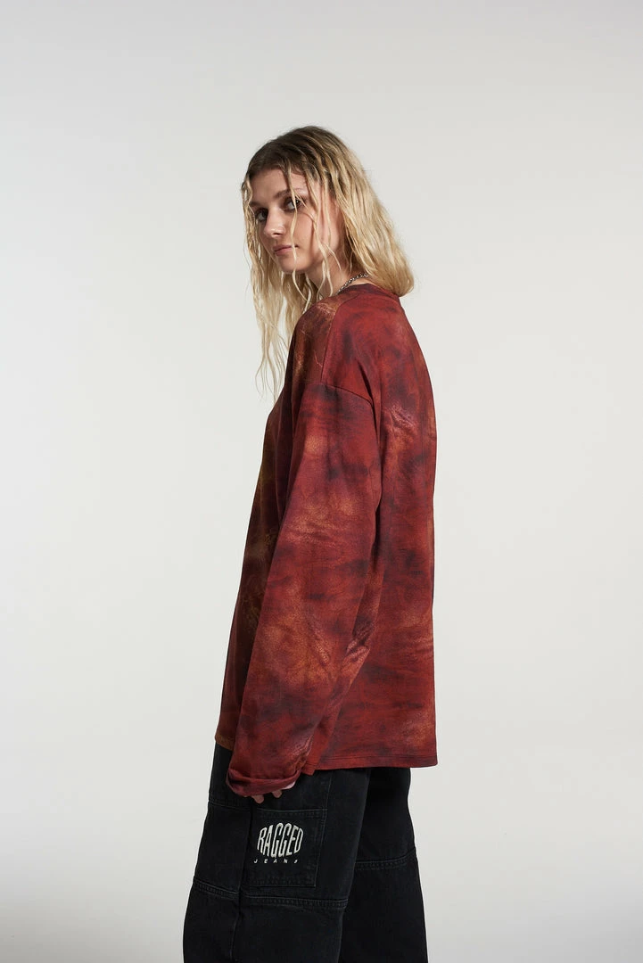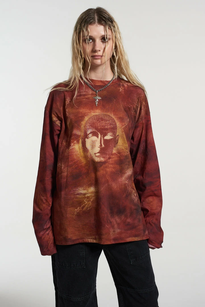 The Ragged Priest All over print long sleeved oversized skater tee with central face design.