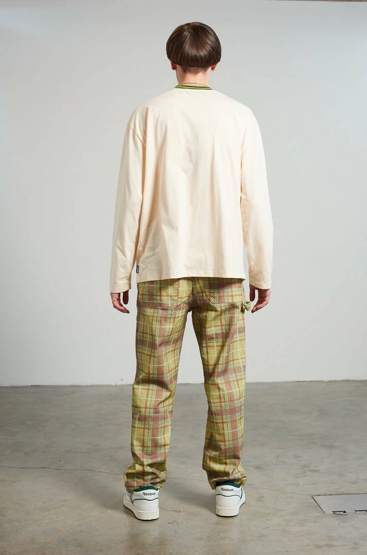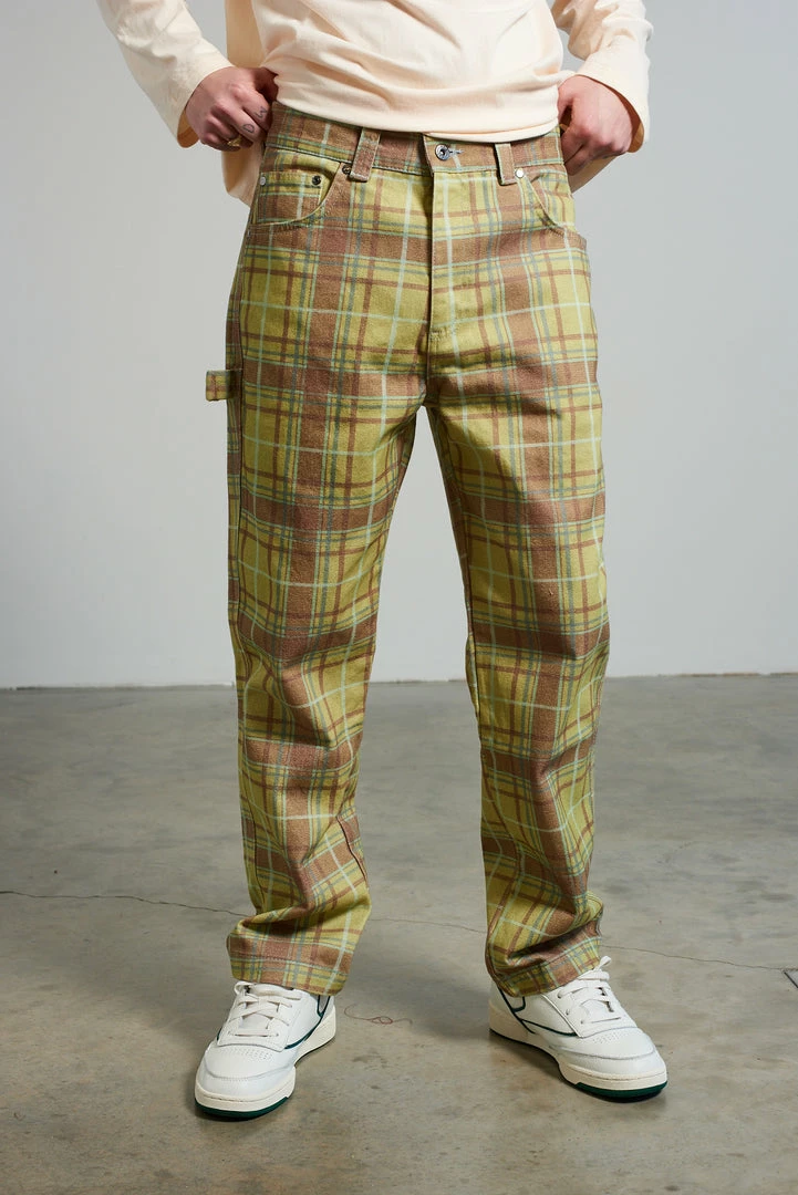 Kickers Classics check print straight leg drill pants with turn up hem.