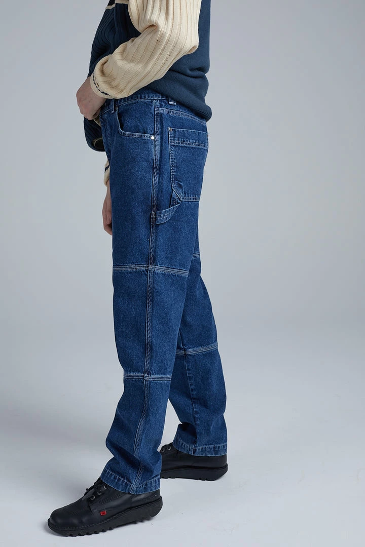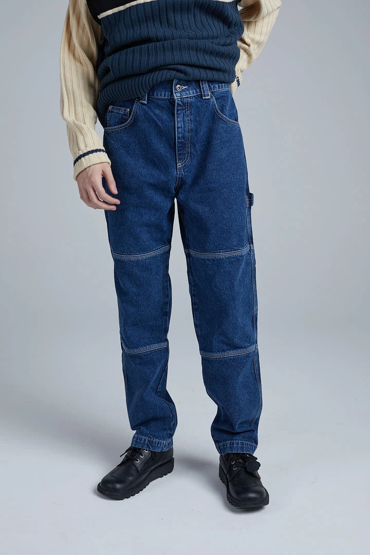 Kickers Classics blue denim panelled pants with white logo.