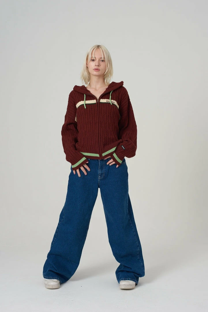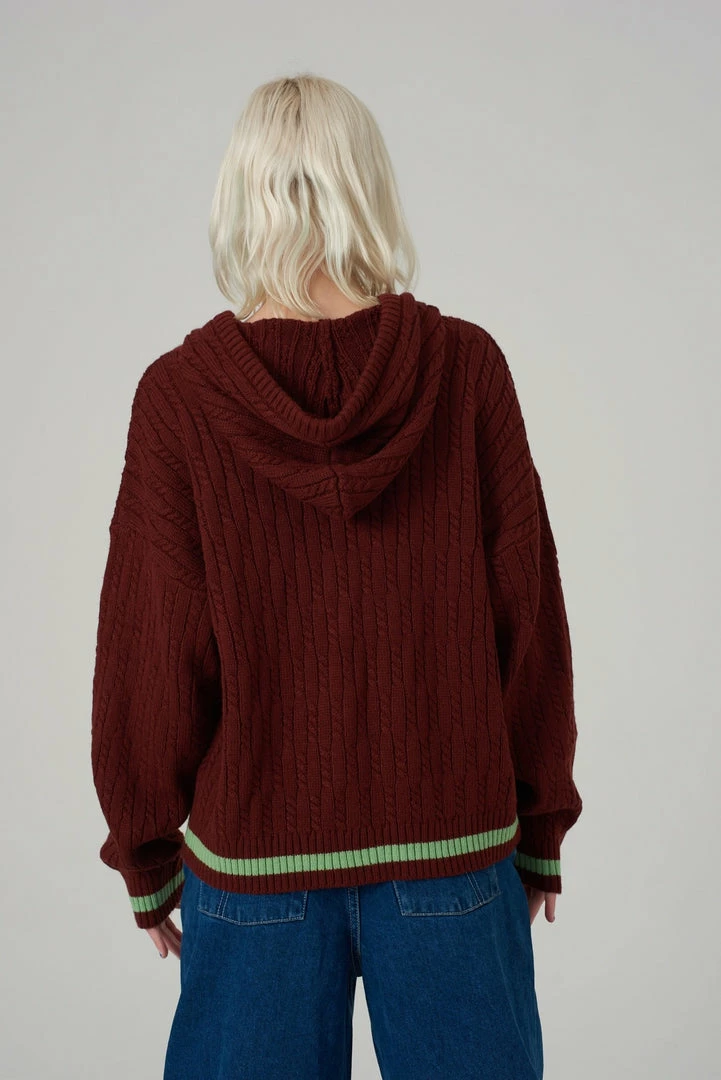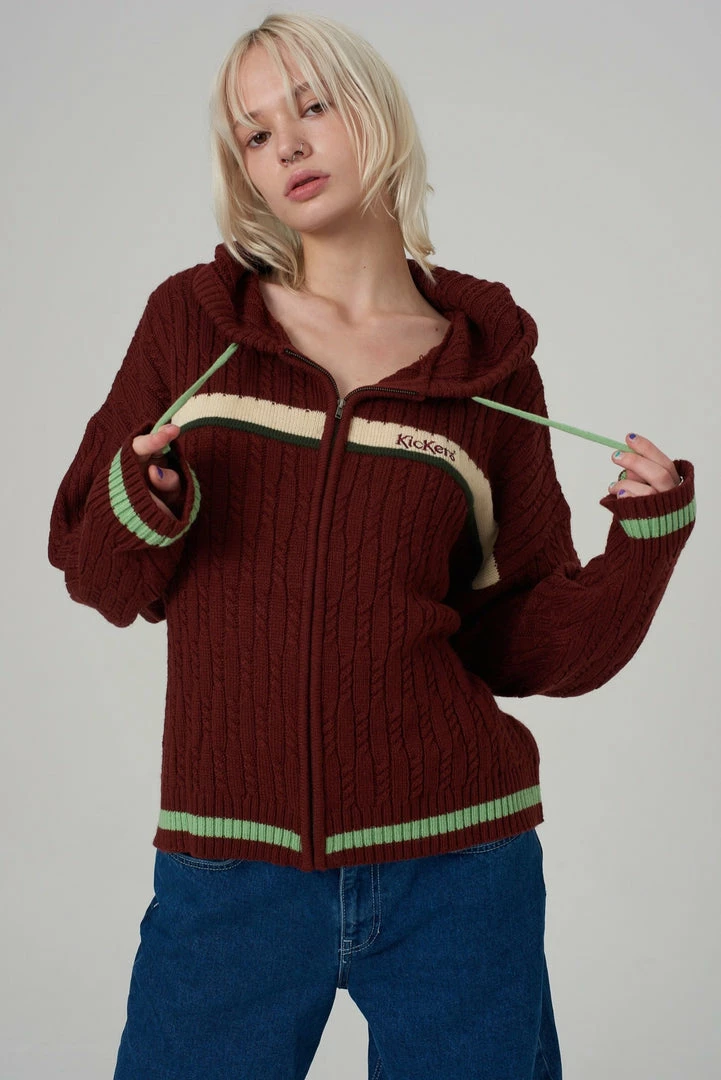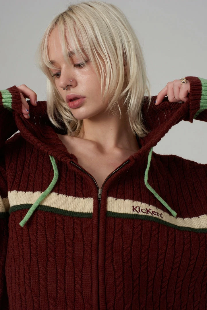 Kickers Classics rust cable knit zip up hoodie.