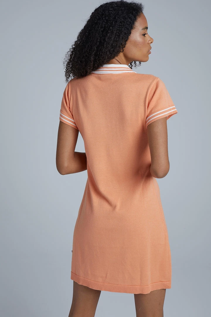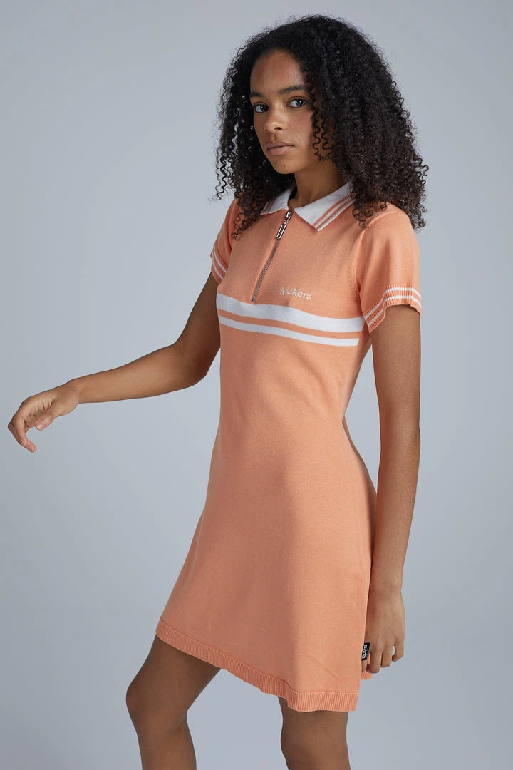 Kickers Classics coral polo dress with chest stipe and embroidered “Kickers” logo.