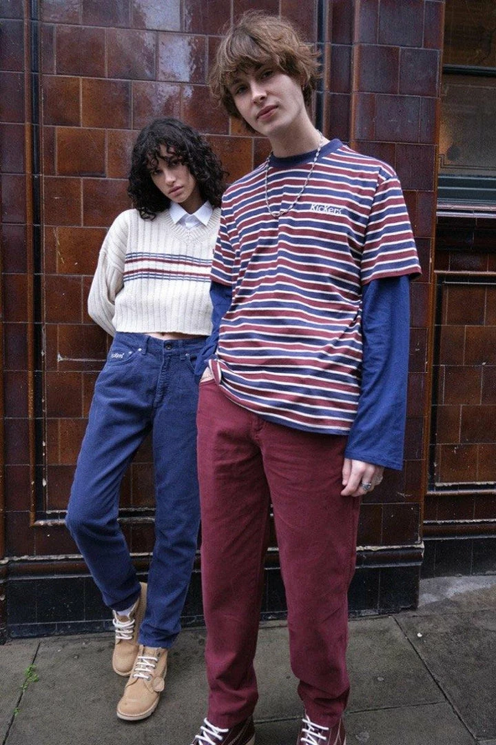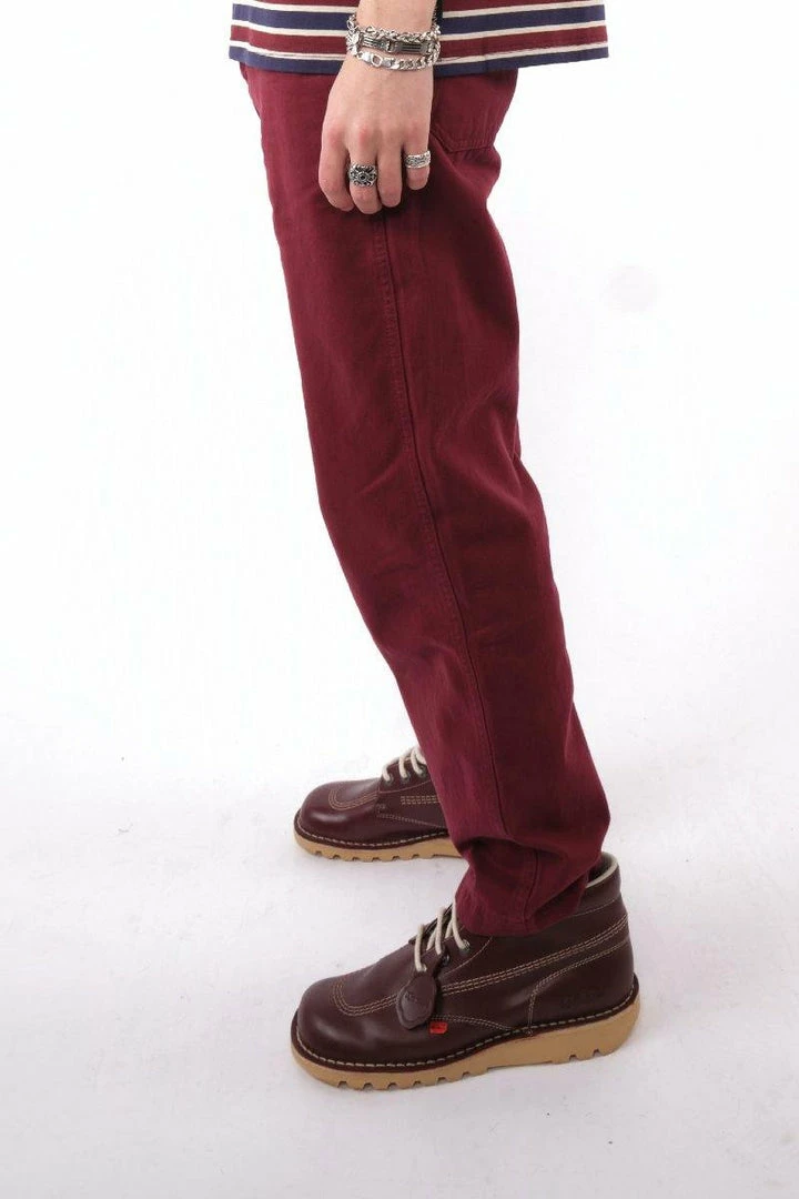 Kicker’s Classics burgundy drill trousers. Complete with an embroidered logo.