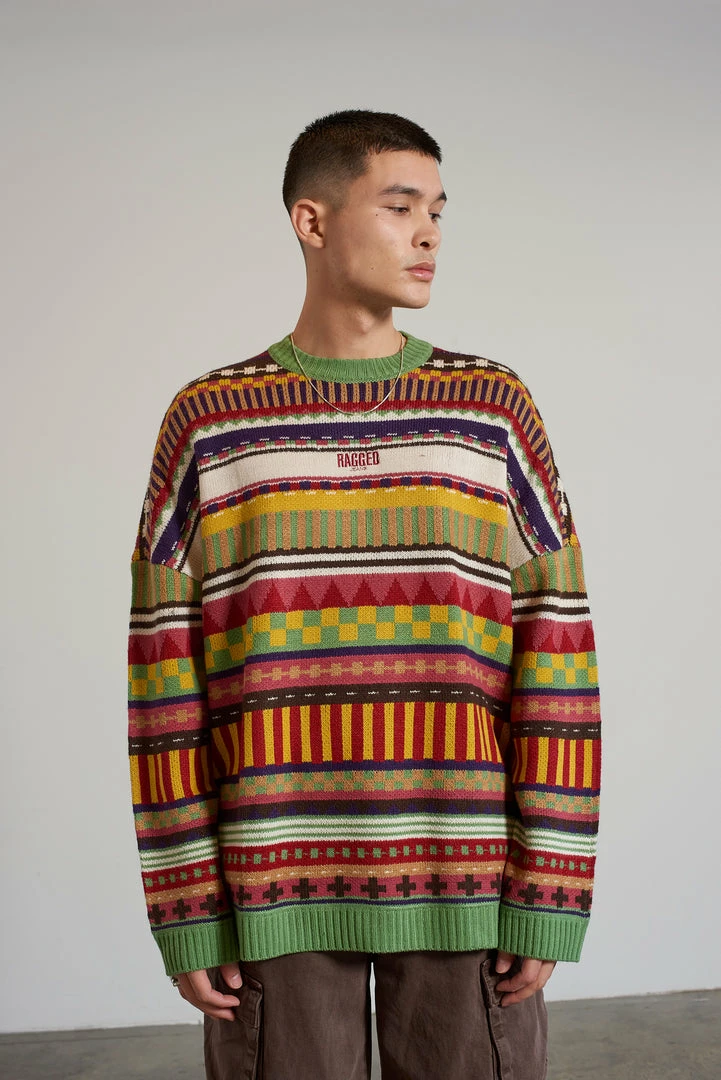 Ragged Jeans mens multicolour sweater shop print long sleeve knit jumper.