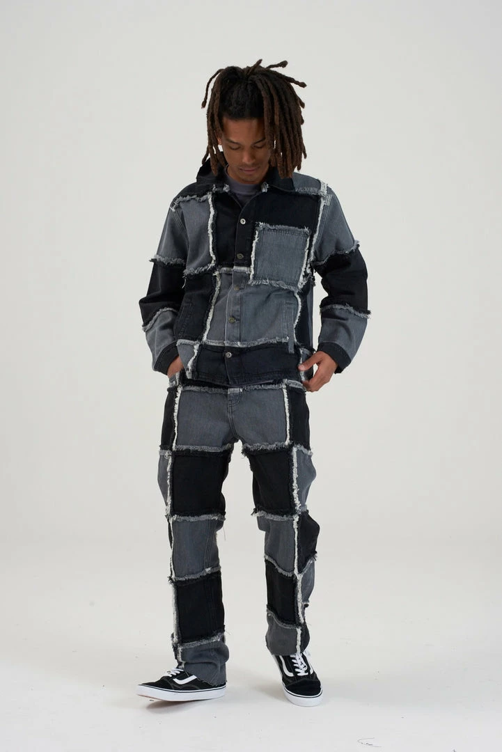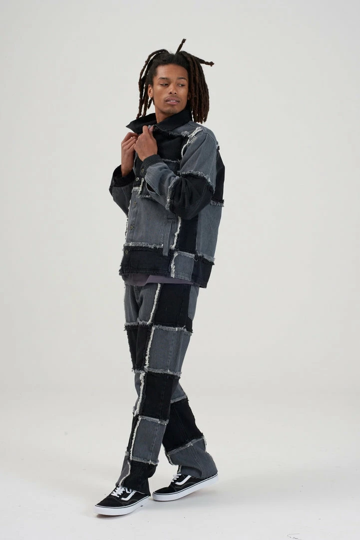 Ragged Jeans mens charcoal patchwork denim jacket.