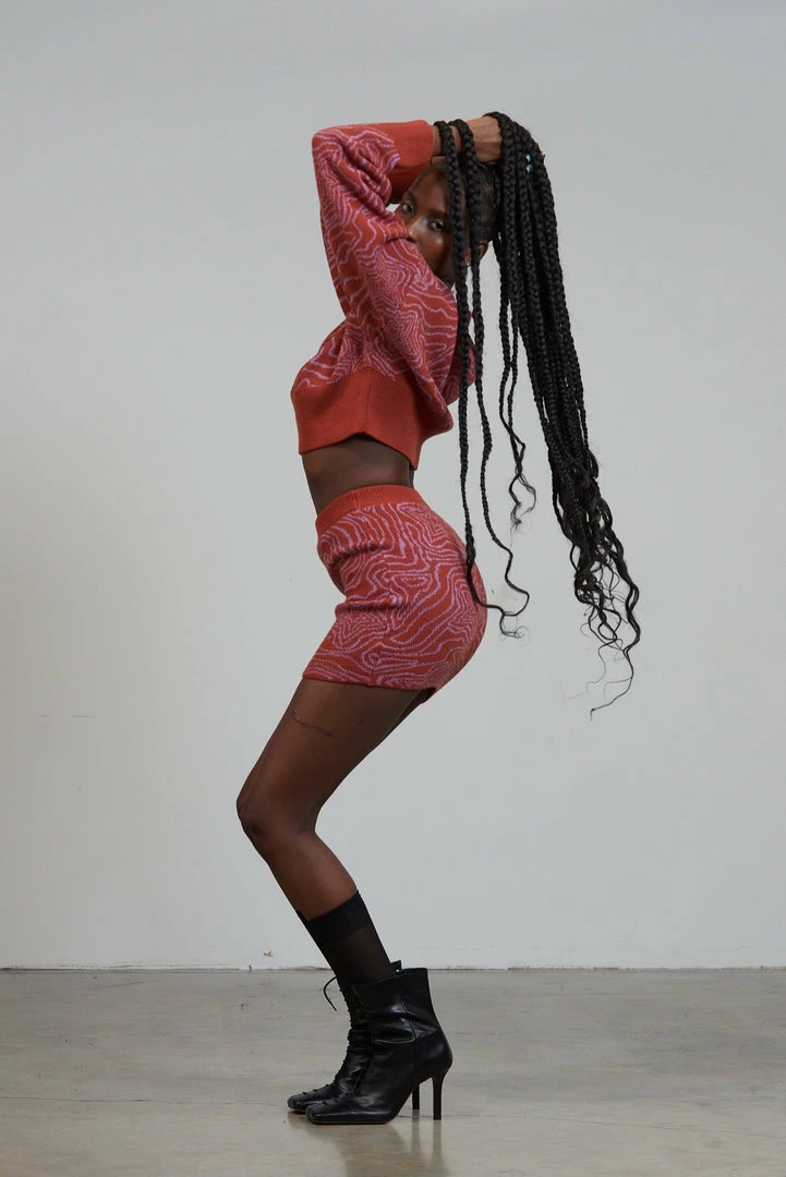 The Lucid Skirt is our knitted mini skirt with all over wavy line star print. This skirt is crafted from 100% recycled polyester and is part of a matching co-ord.