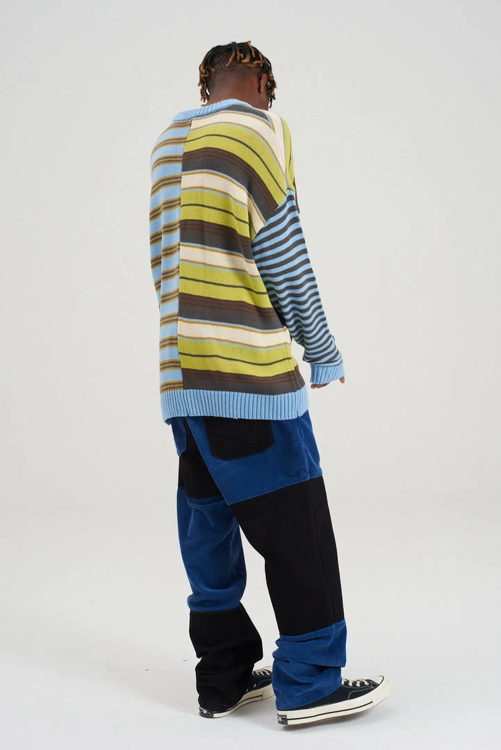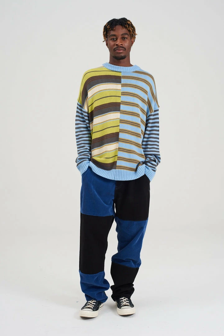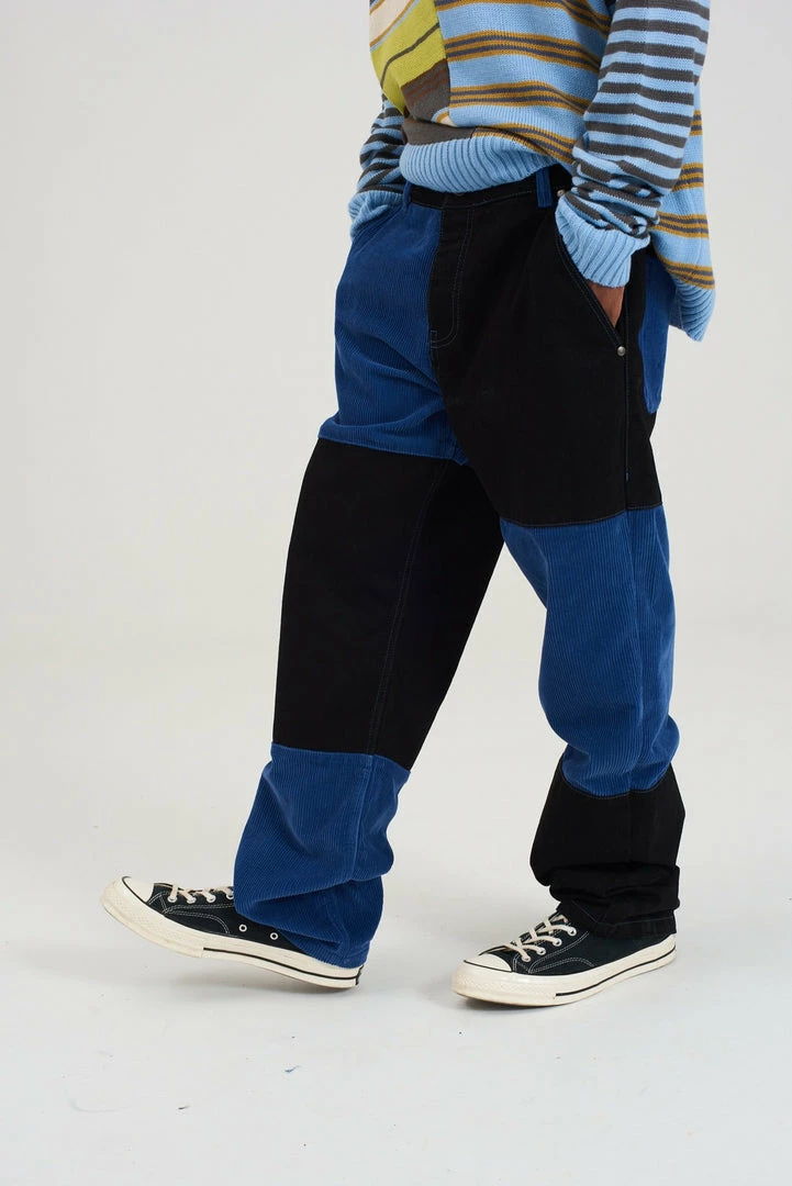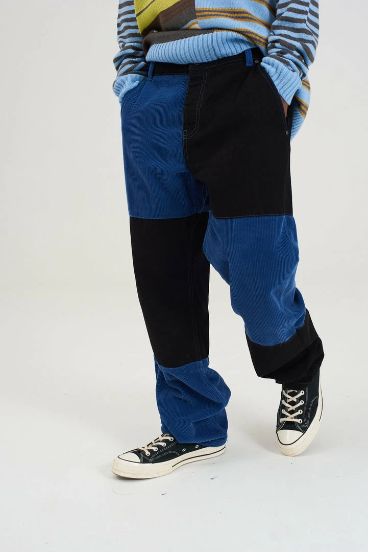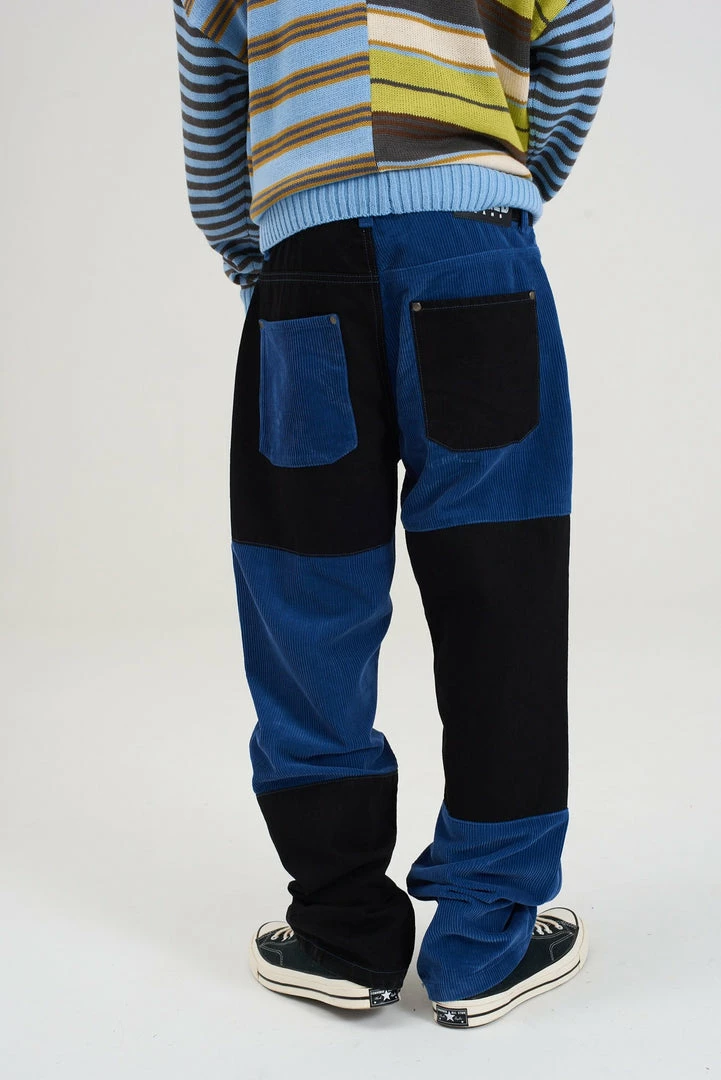 Ragged Jeans mens charcoal and blue mixed cord and denim jeans.