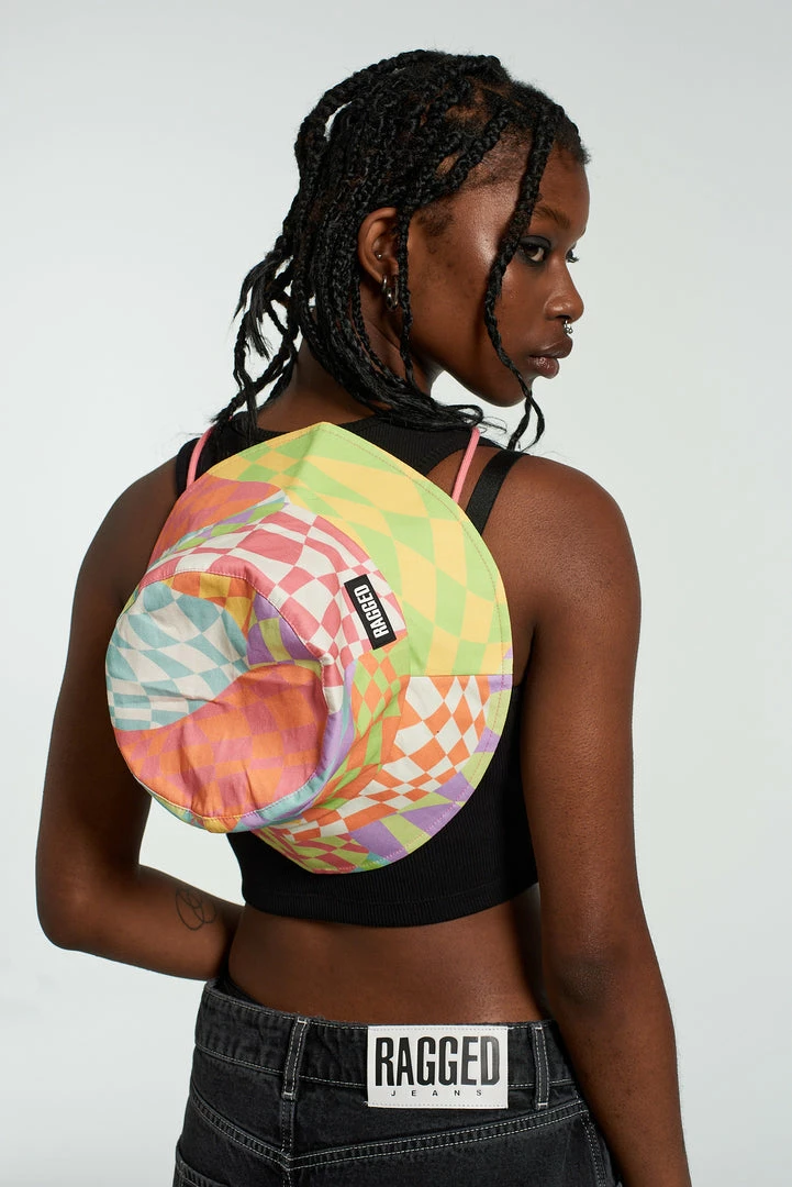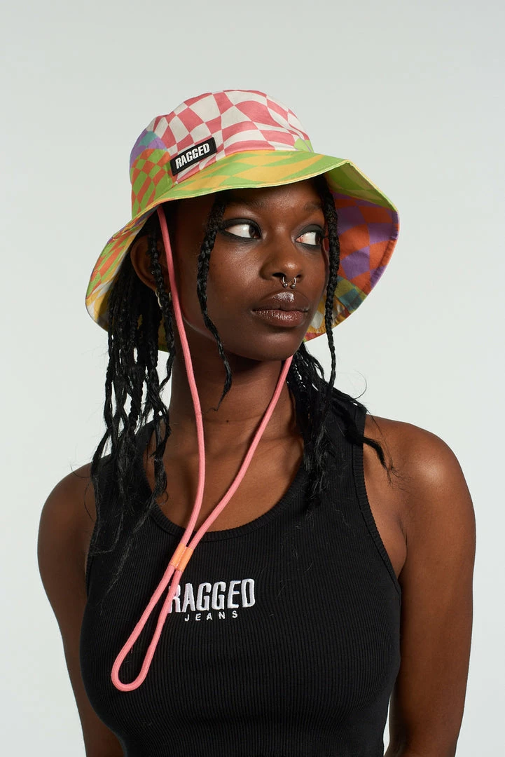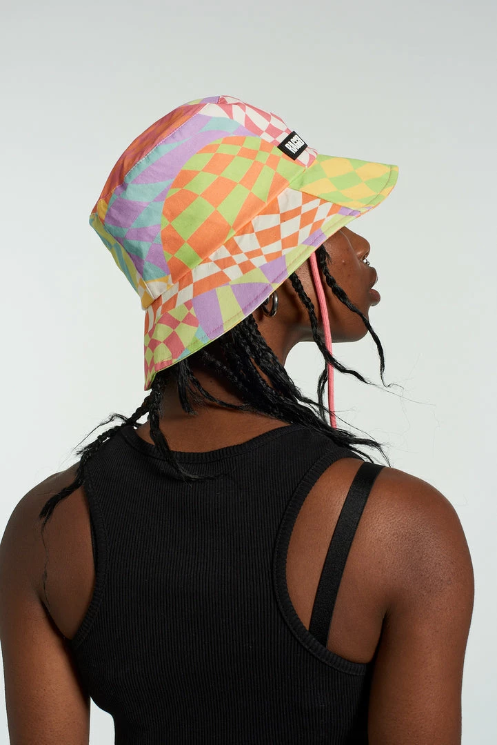 The Ragged Priest warped psychedelic checkerboard design fisherman bucket hat.