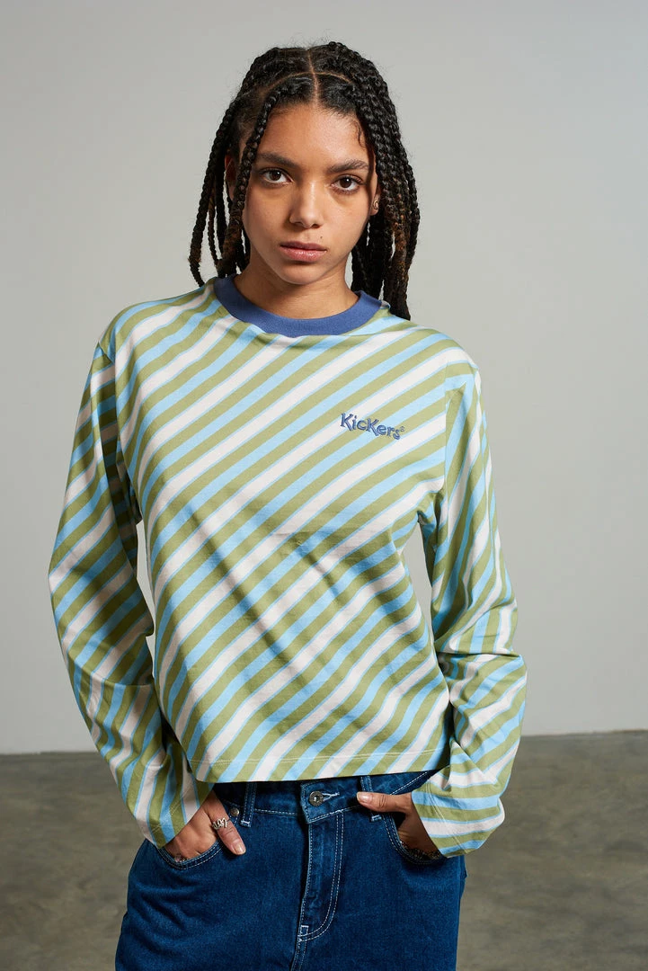 Kickers Classics multi colour diagonal stripe long sleeve tee.