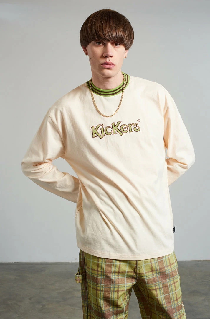 Kickers Classics ecru long sleeve tee with chest logo and stripe trims.