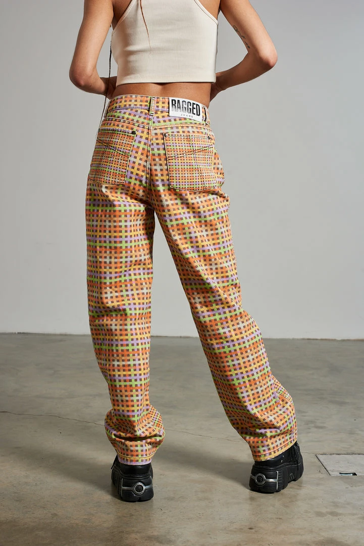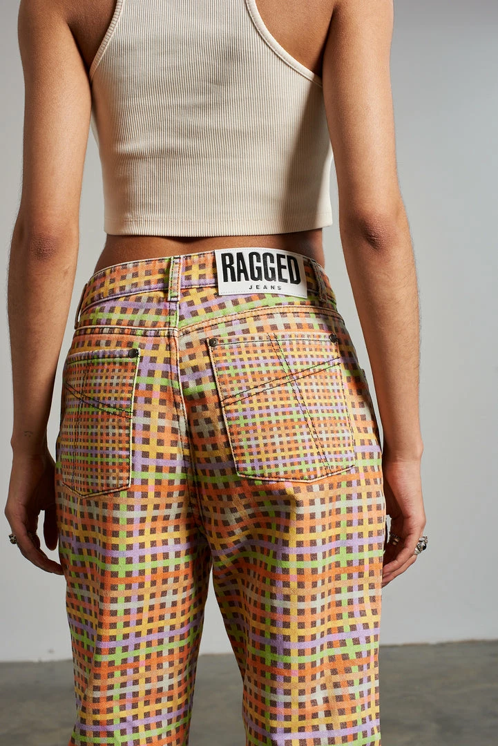 Ragged Jeans multi colour mini check printed denim dad jean.