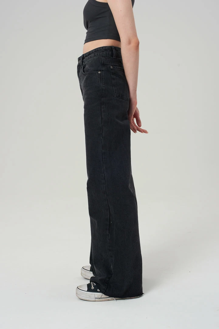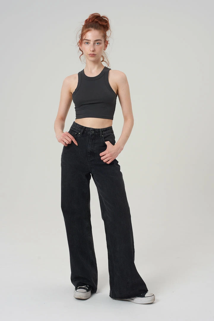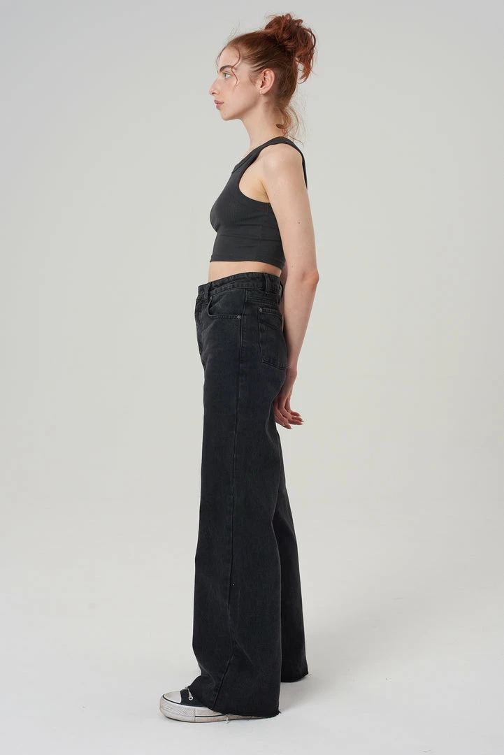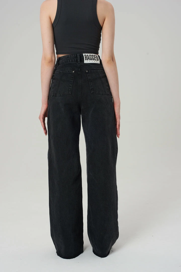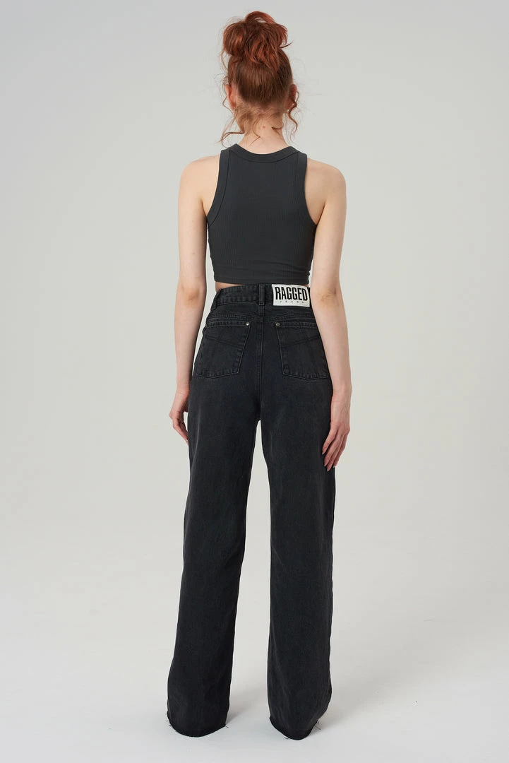 The Ragged Priest signature Trip fit in our charcoal wash organic denim with classic “Ragged Jeans” belt loop back tab.