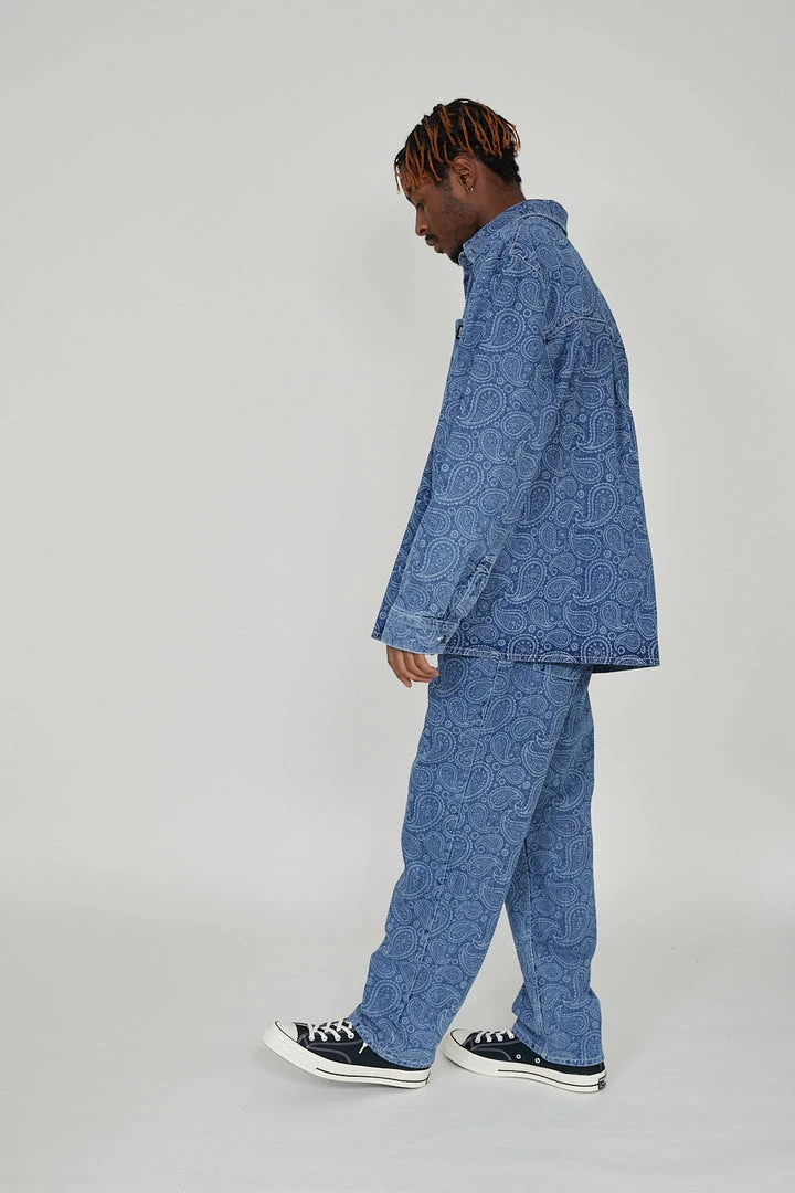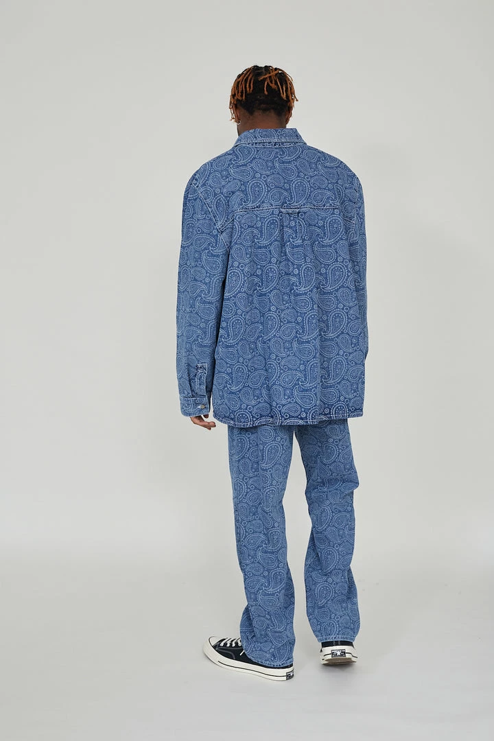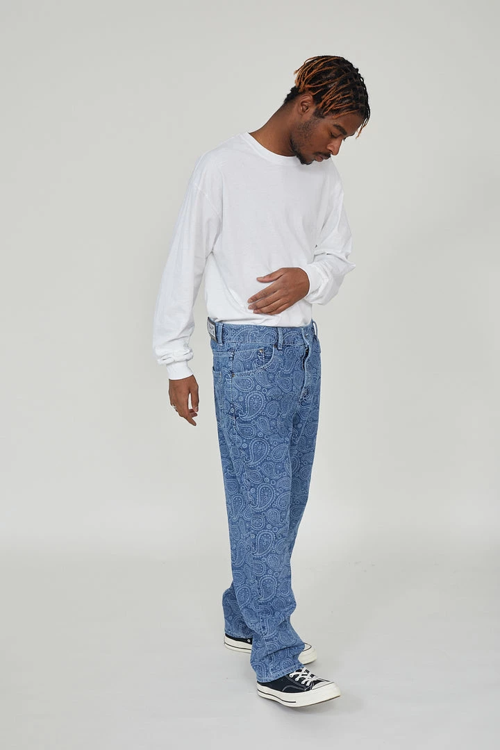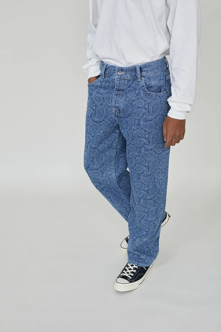 Ragged Jeans mens paisley laser cut mid wash denim jeans.