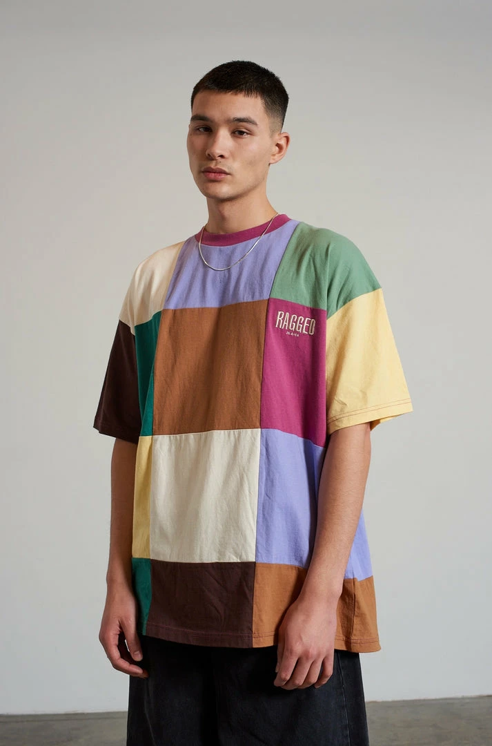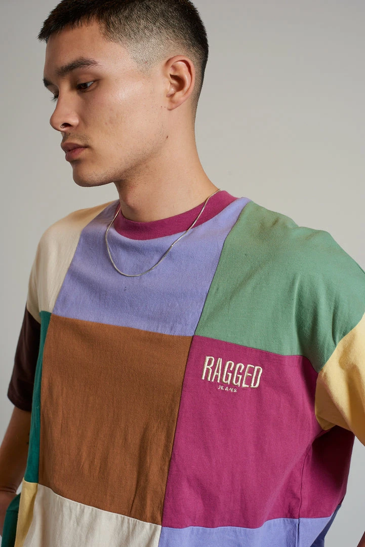 Ragged Jeans mens colour block short sleeve tee with embroidered Ragged logo.