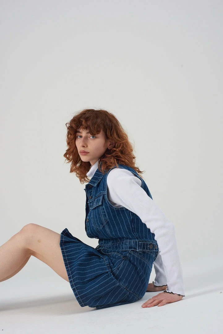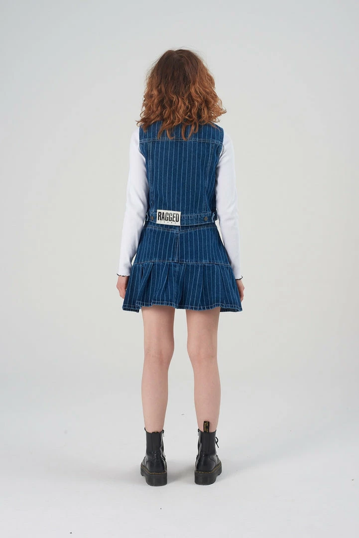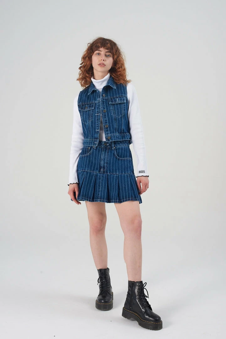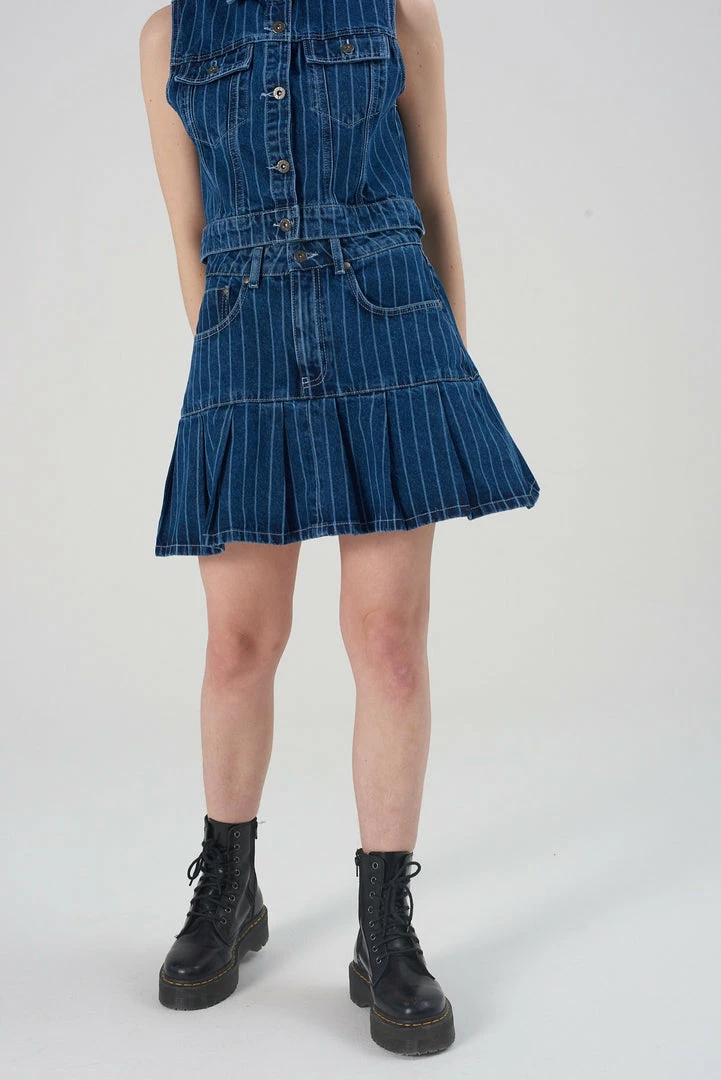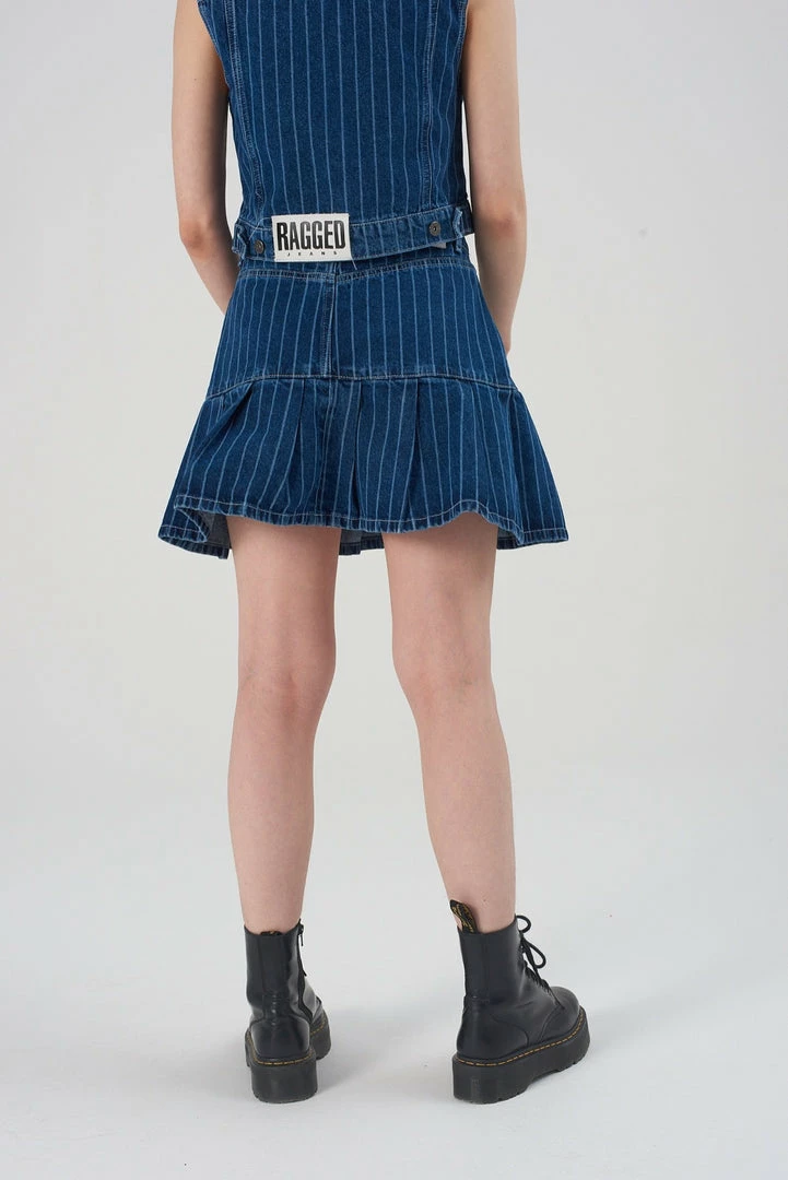 Ragged Jeans blue pinstripe pleated denim mini skirt.
