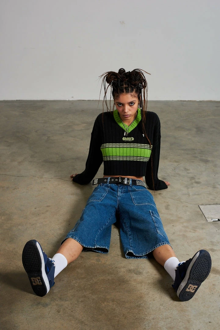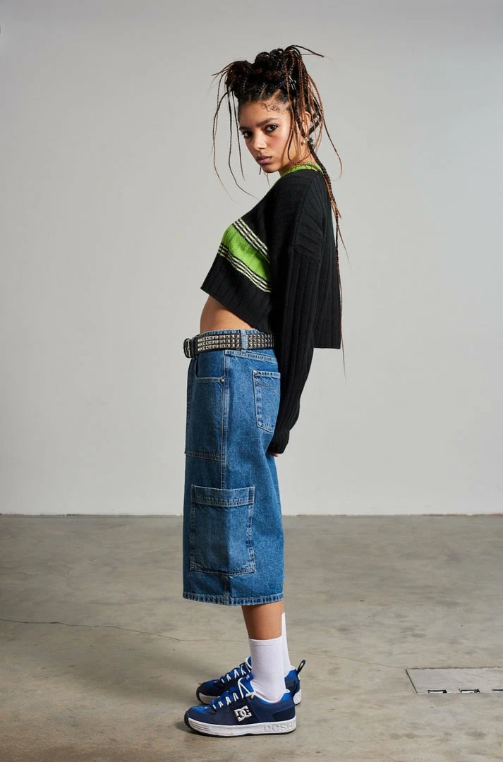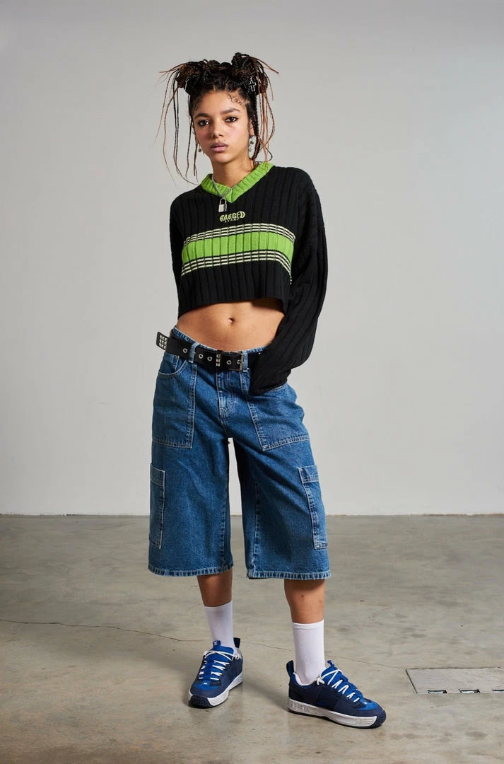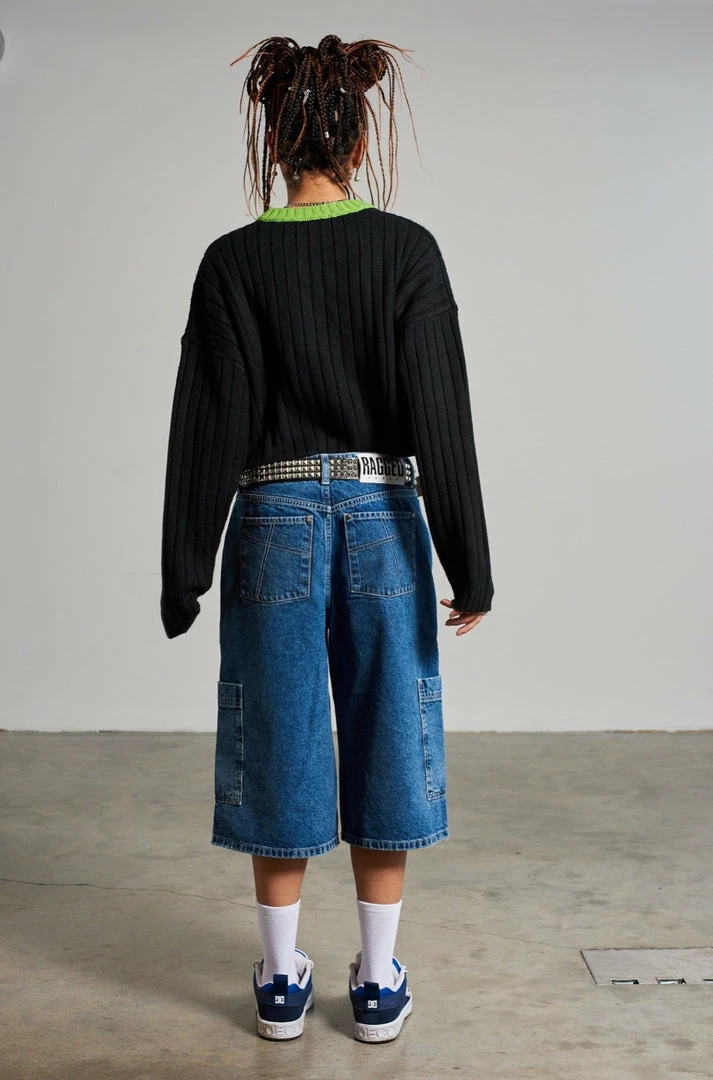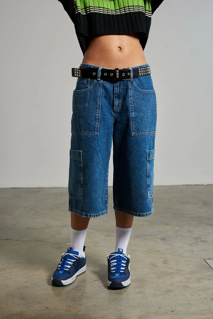 Ragged Jeans blue denim 3/4 length combat shorts.
