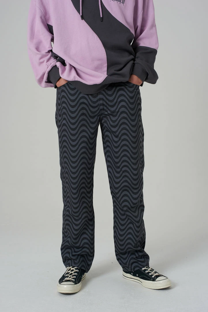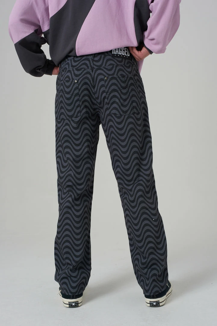 Ragged Jeans mens black & grey wave print denim straight leg jean.