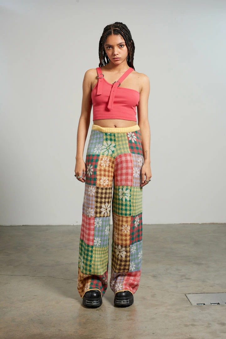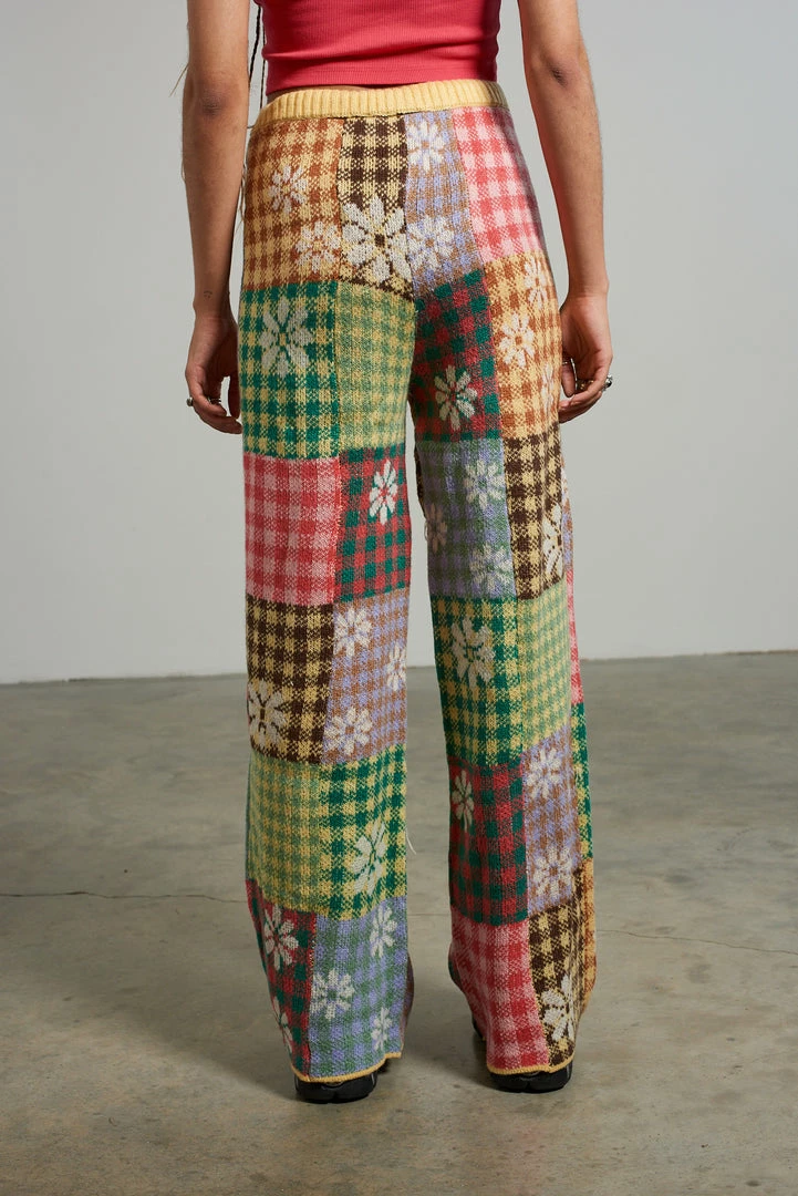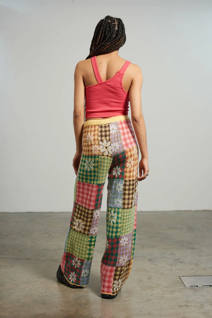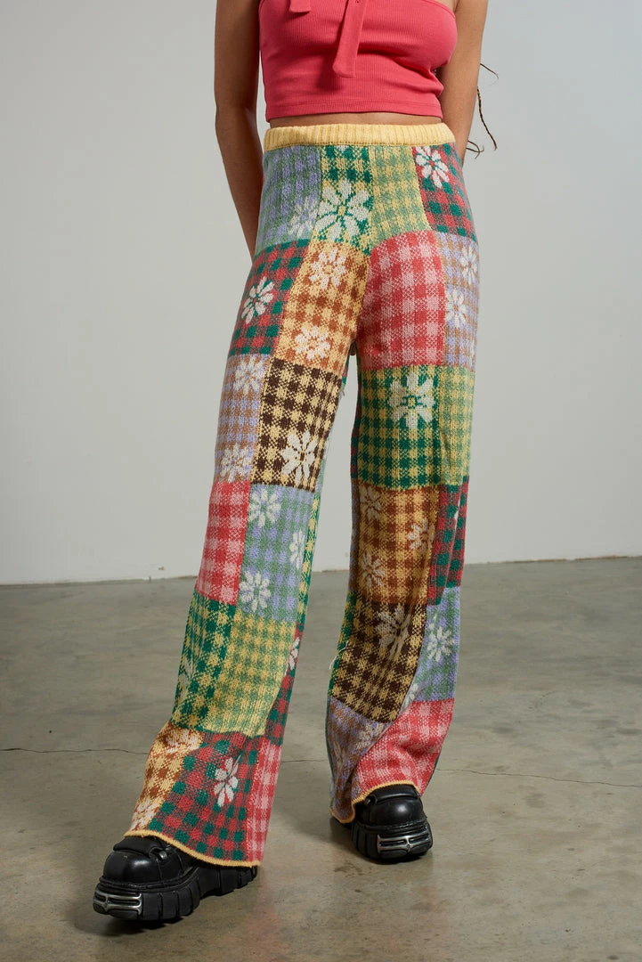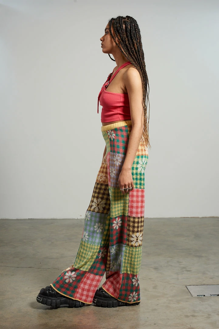 The Ragged Priest mixed patchwork panelled knitted straight leg pant.