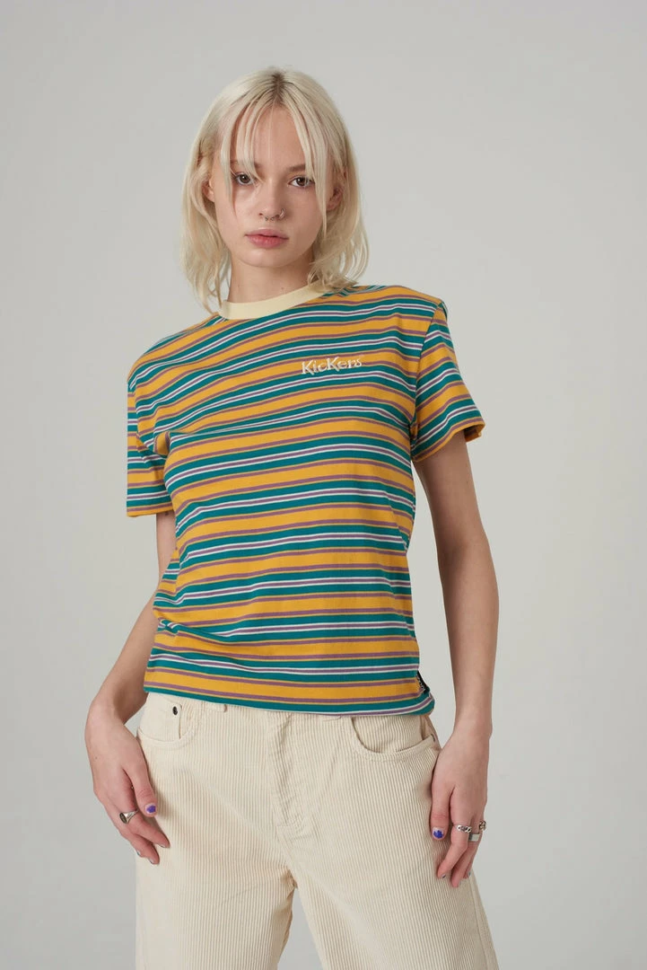 Kickers Classics multi stripe short sleeve tee with flocked logo.