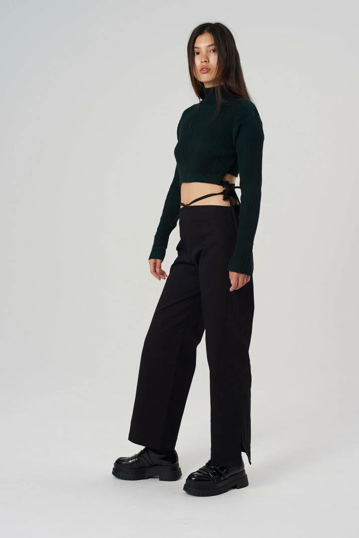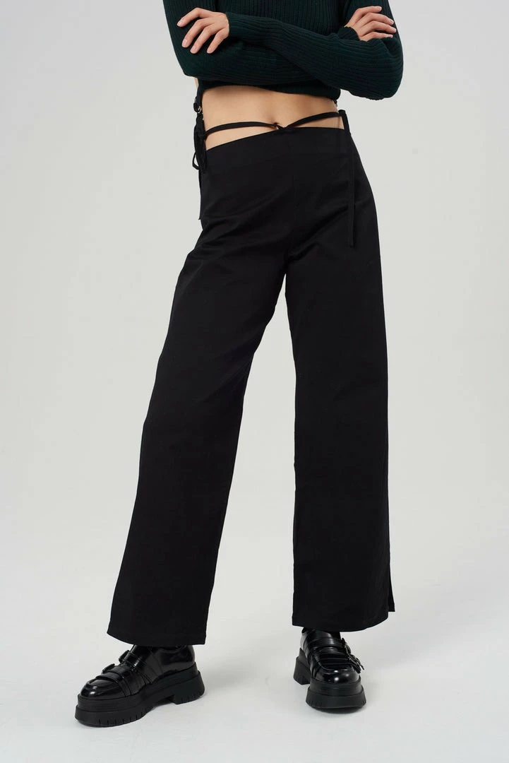 The Vice Pants are our black woven cotton pants with side tie detail. Crafted from 98% organic cotton this pants are mid rise.