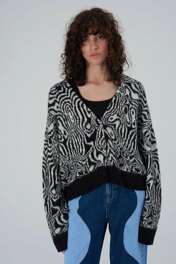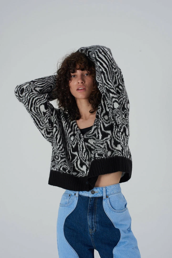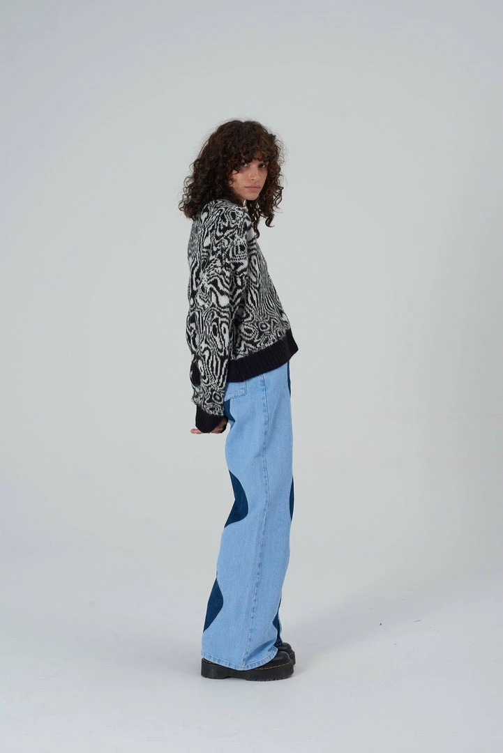 Ragged Jeans black and white marble print knit jumper.