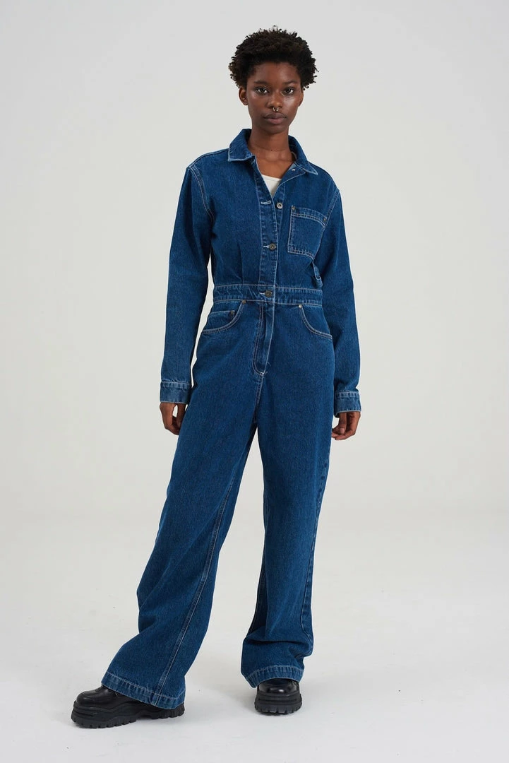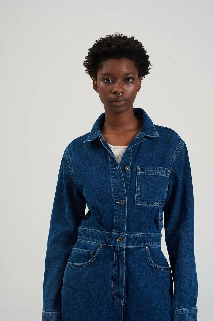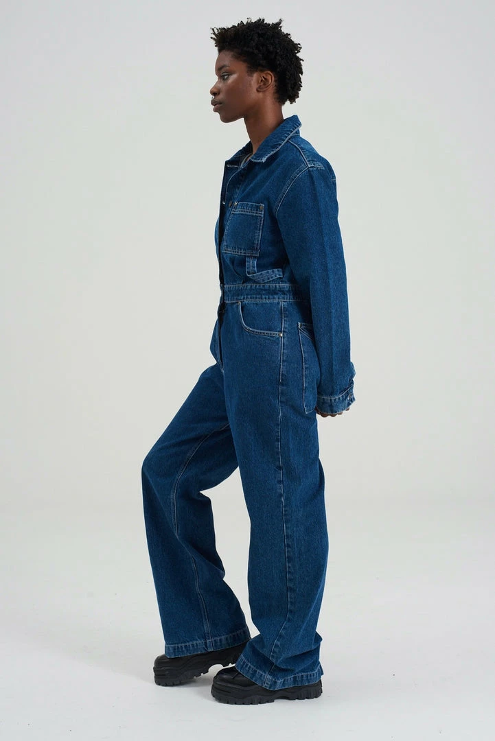Ragged Jeans blue denim boilersuit with button up front.