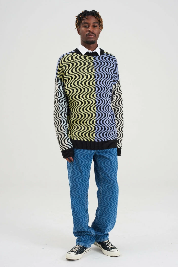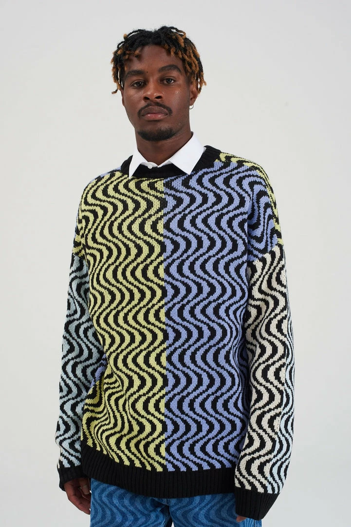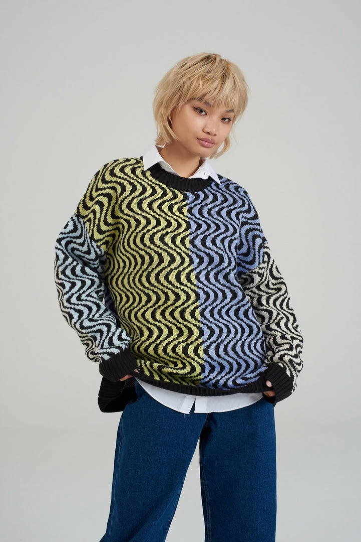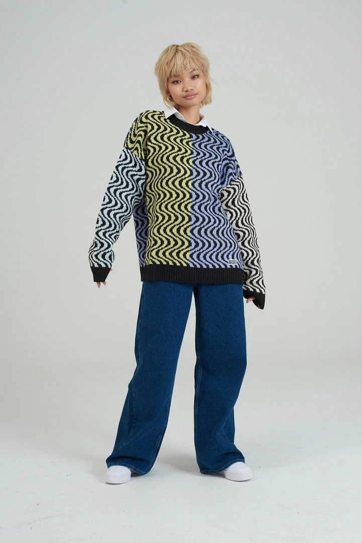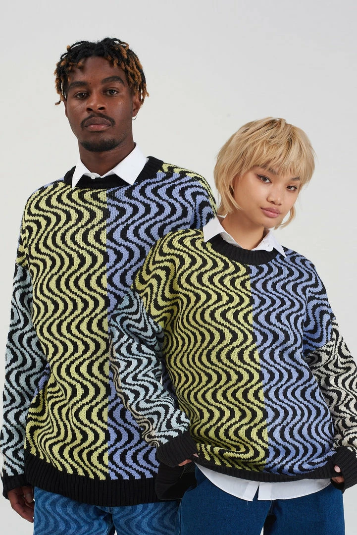 Ragged Jeans unisex multi colour vertical wiggle print knit jumper.