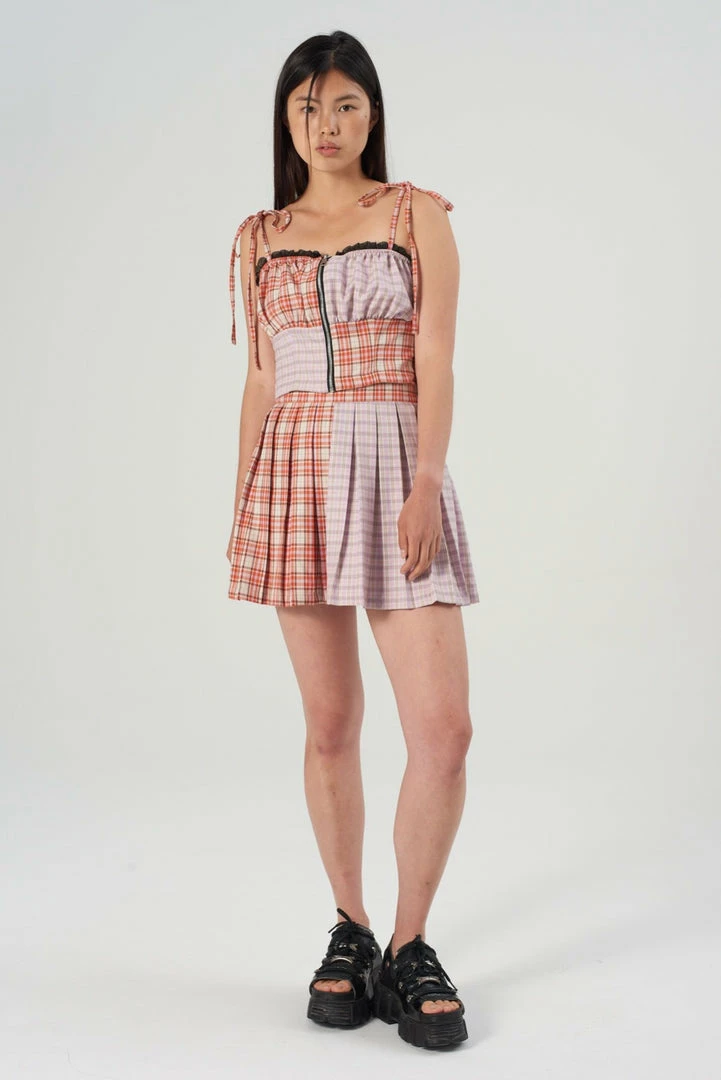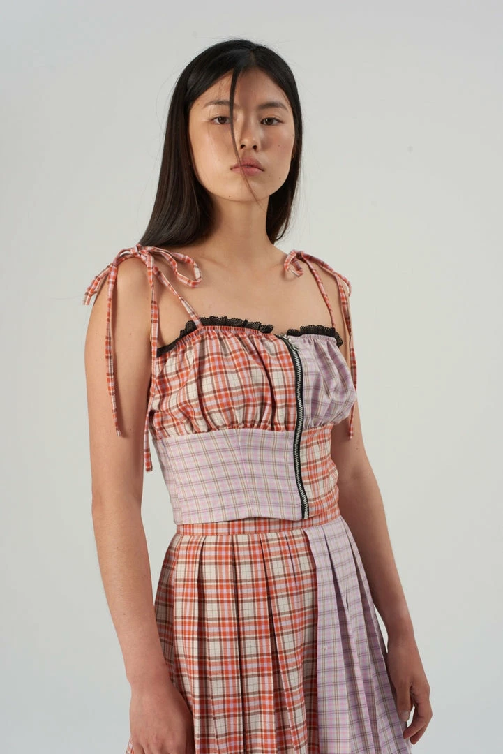 The Ragged Priest mixed check panelled cami top with lace trim.